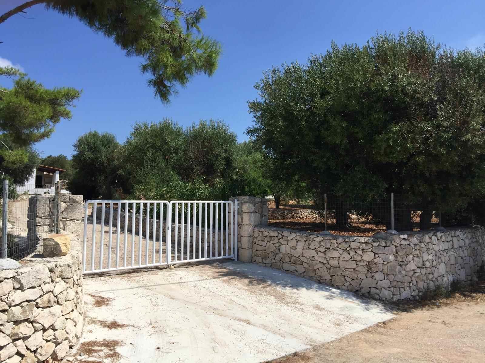 La struttura si presenta in questo modo: proprietà completamente recintata da muretto a secco, viale d’ingresso e posto auto all’interno per due auto.