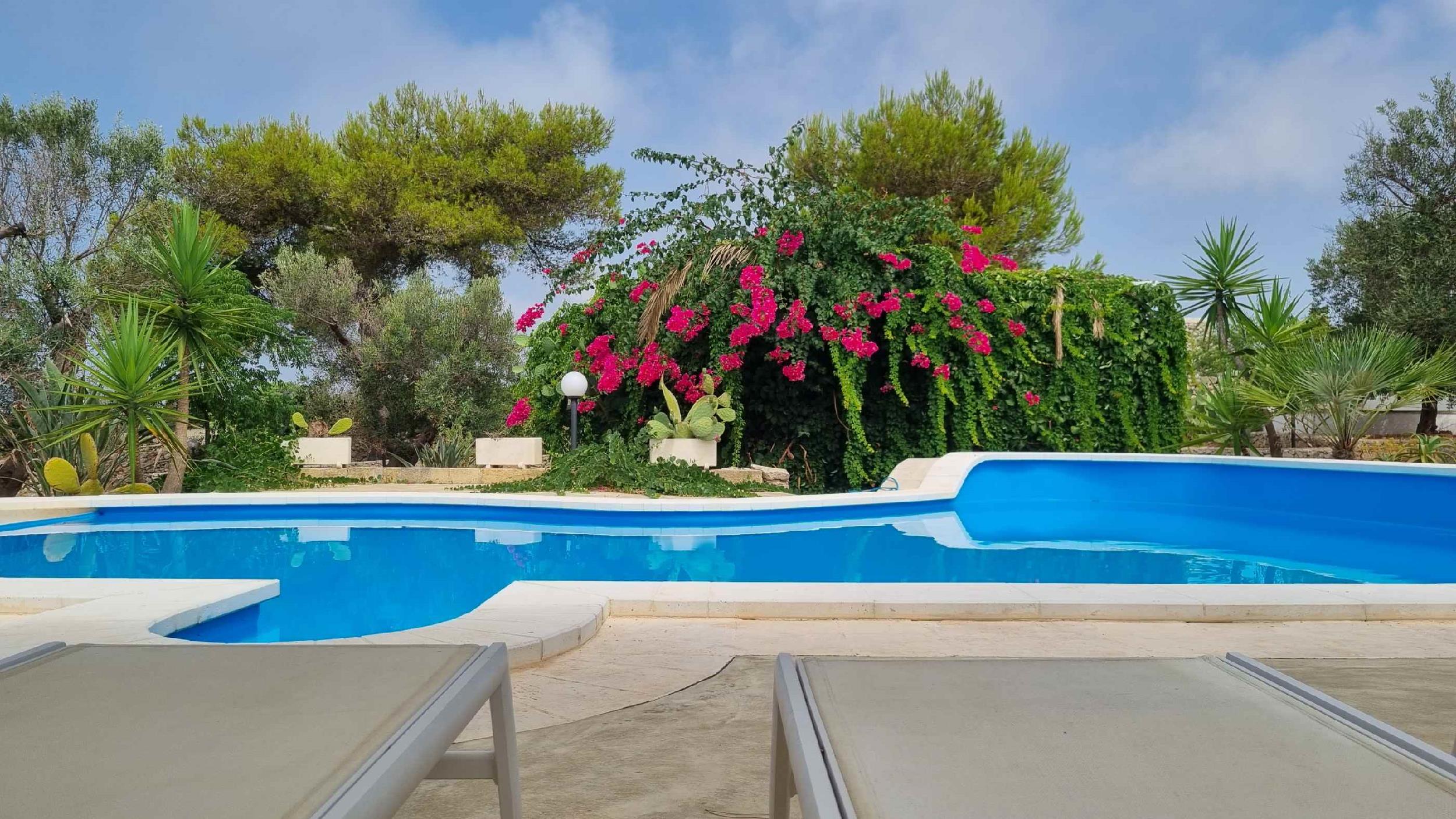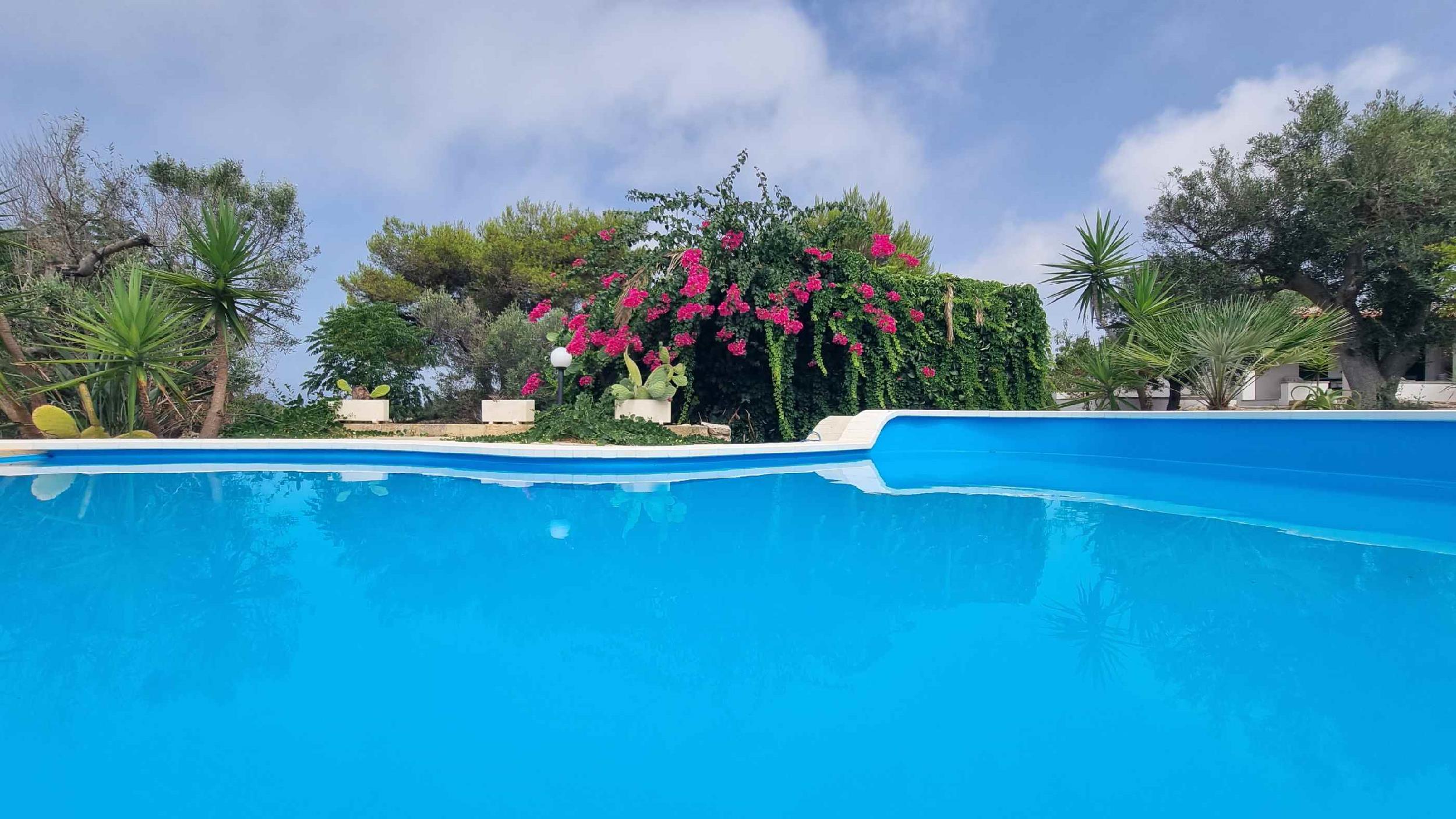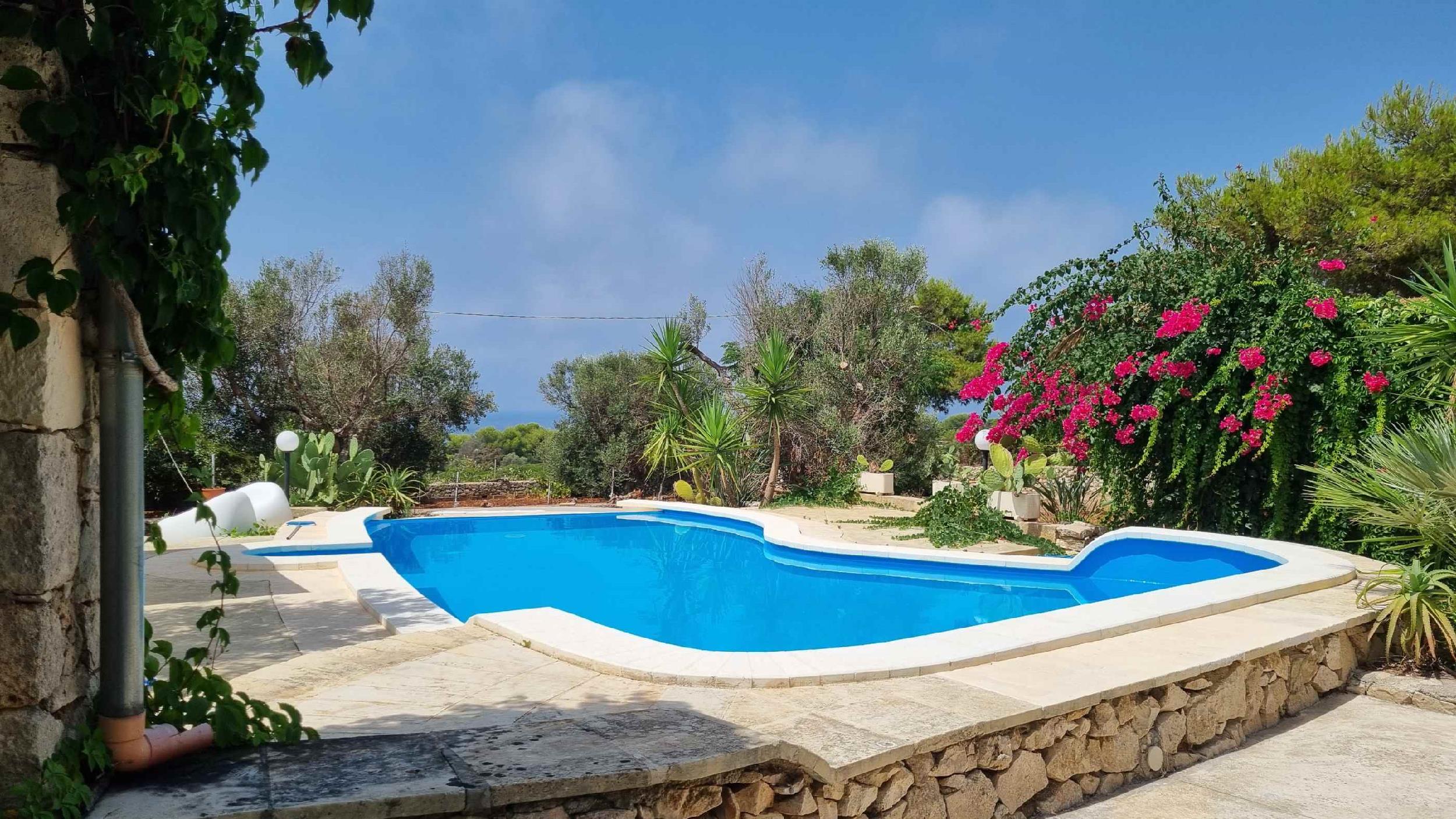 Fulcro centrale dell’abitazione è la bellissima zona piscina con lato vista mare a sfioro racchiusa dalla vegetazione e con vista mare.