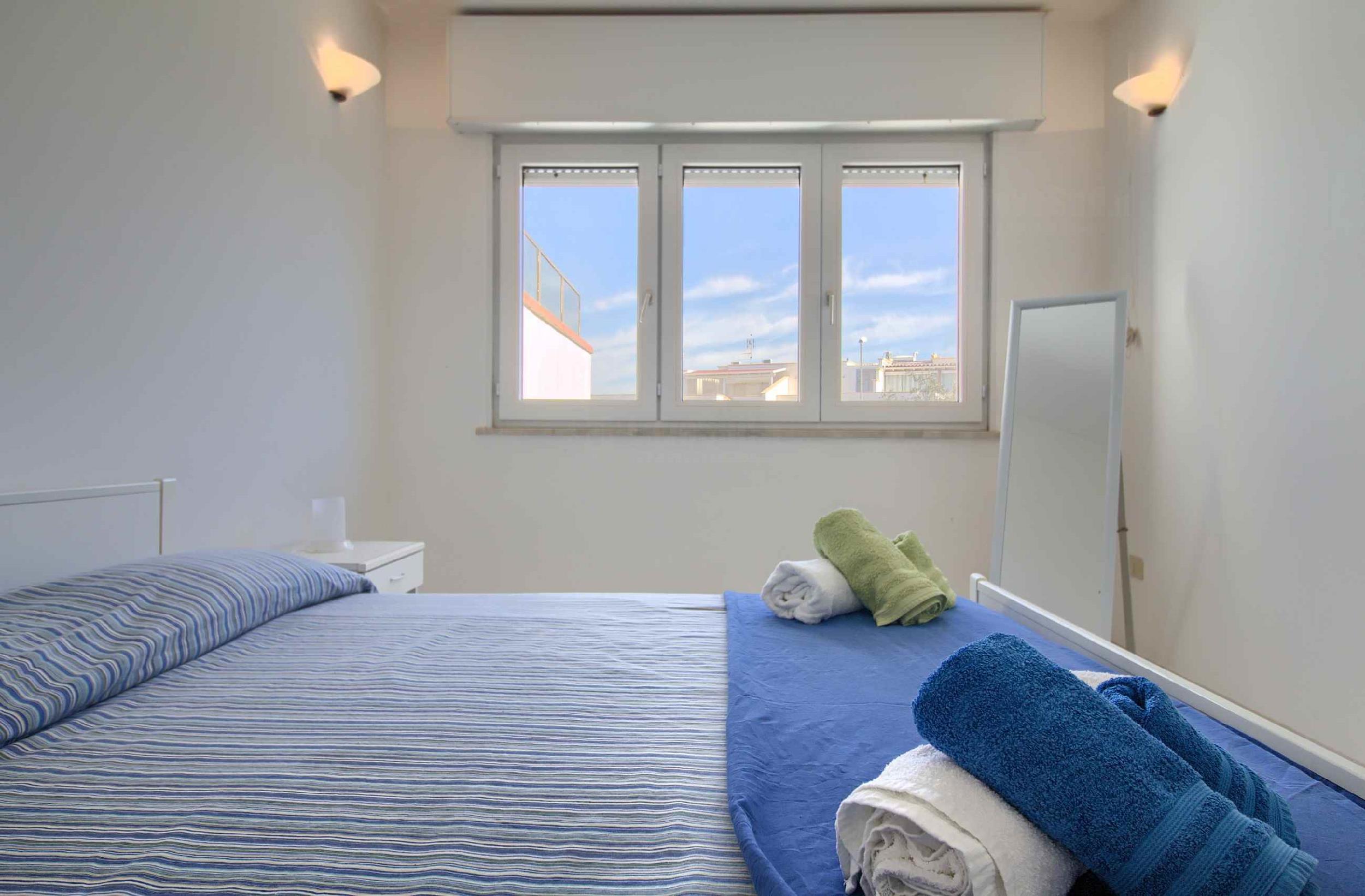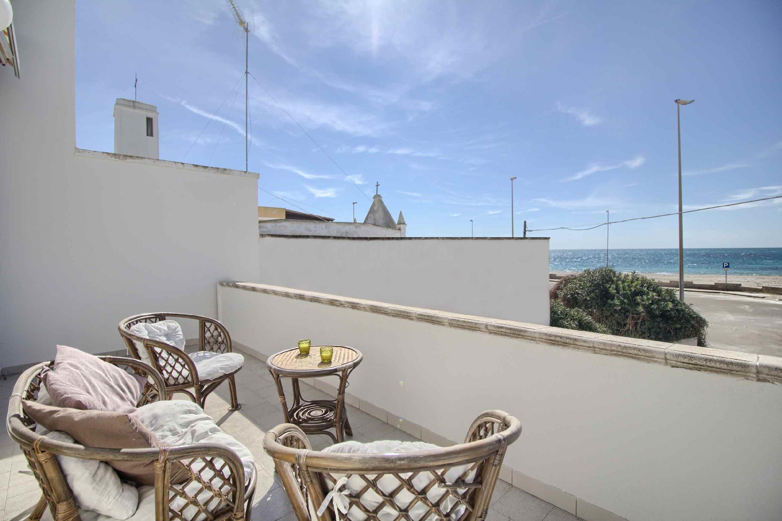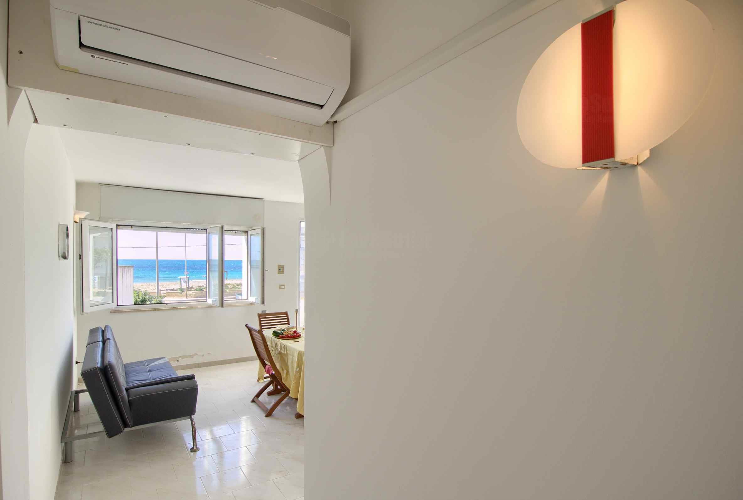 La dimora ha un balcone fronte mare ben arredato da cui poter osservare il mare e l’intero piazzetta sotto casa. All’interno vi è un ampio e luminoso soggiorno con divano, tv e una piccola cucina con forno, dotata di ogni utensile. Da qui, stando comodamente seduti sul divano, si può godere di una vista unica sul mare e sulla spiaggia circostante. La zona notta ha due camere da letto, una doppia e l’altra matrimoniale, questa molto spaziosa. Infine un bagno completo di servizi con doccia e lavatrice.