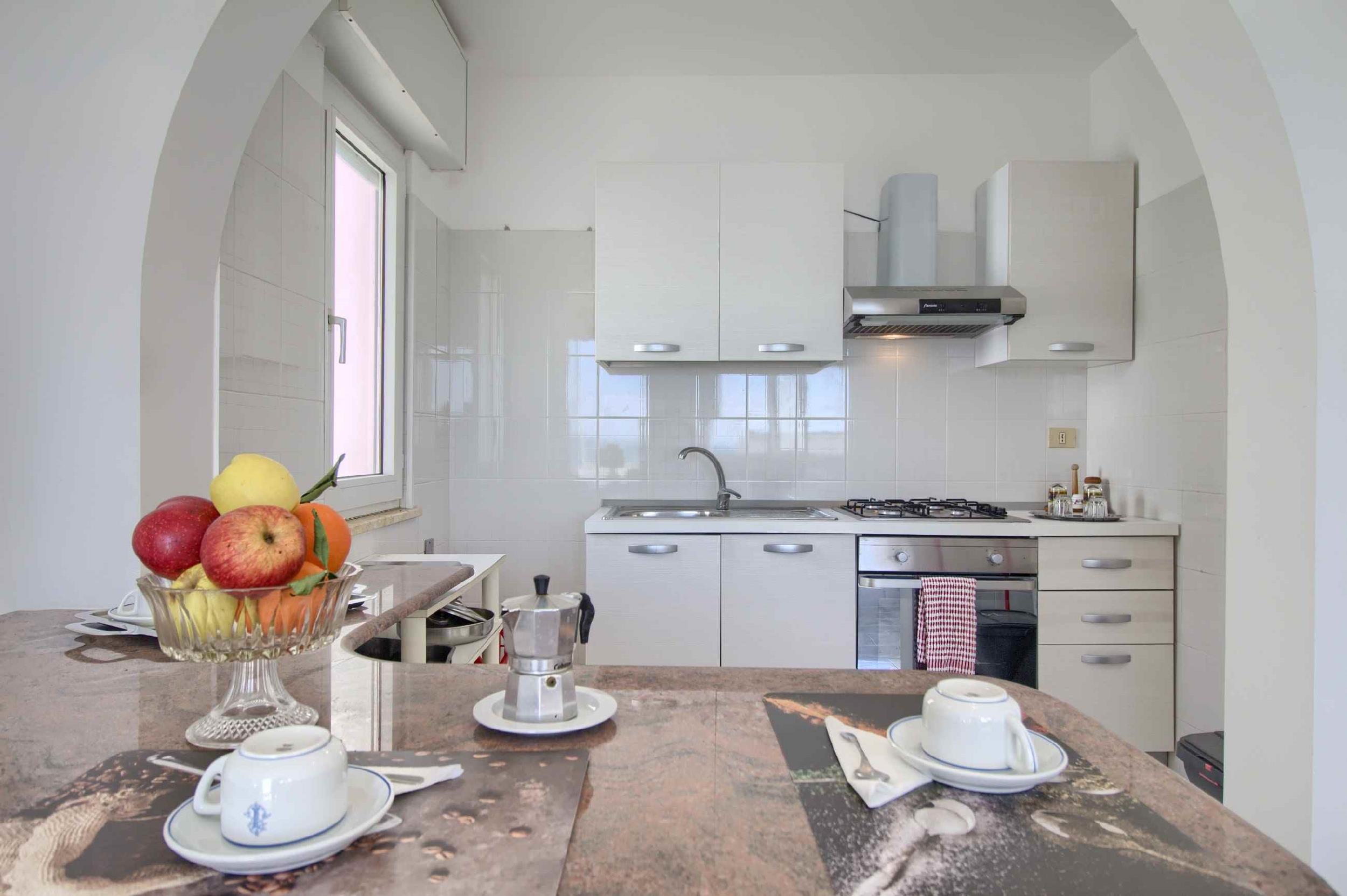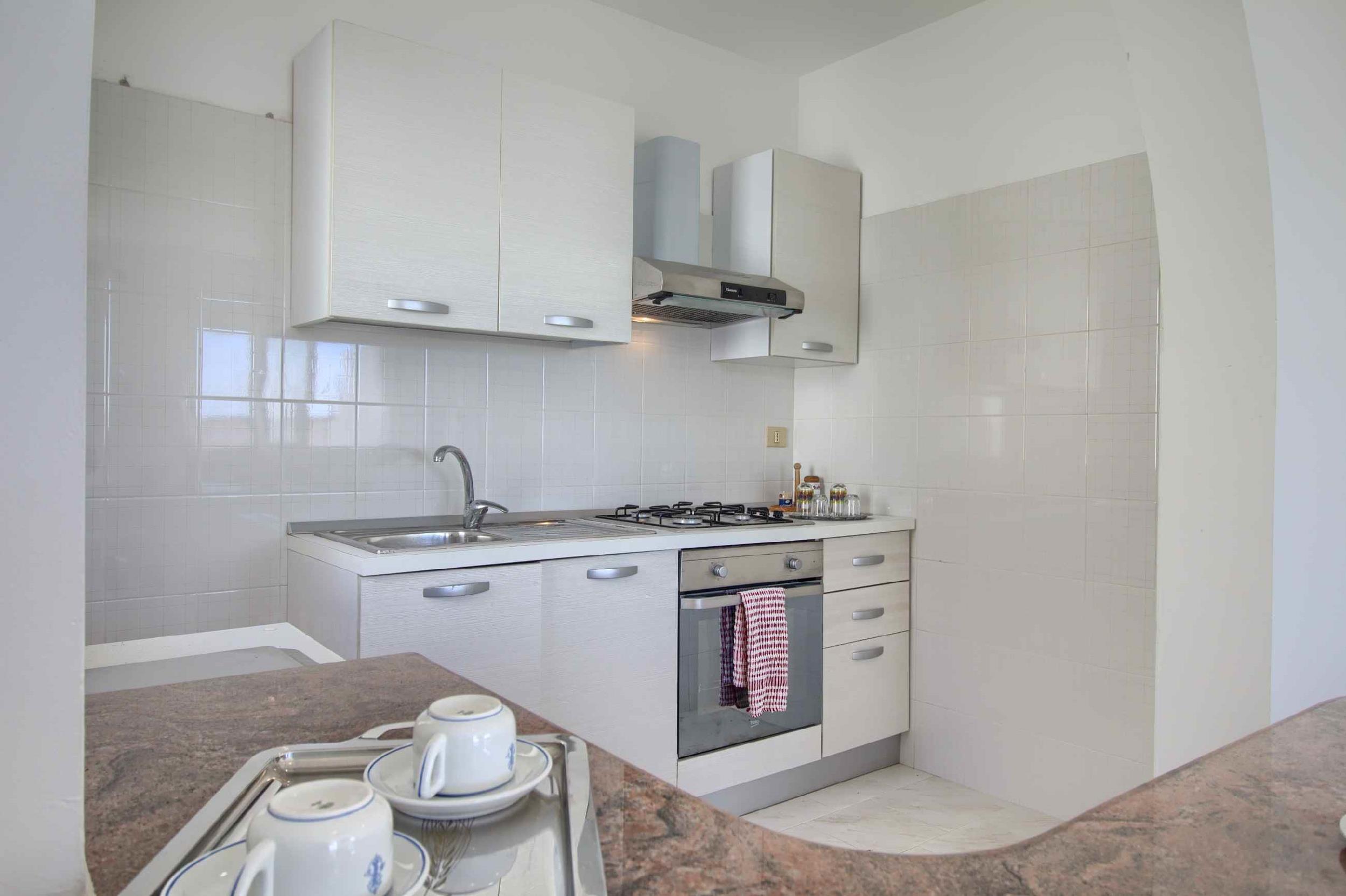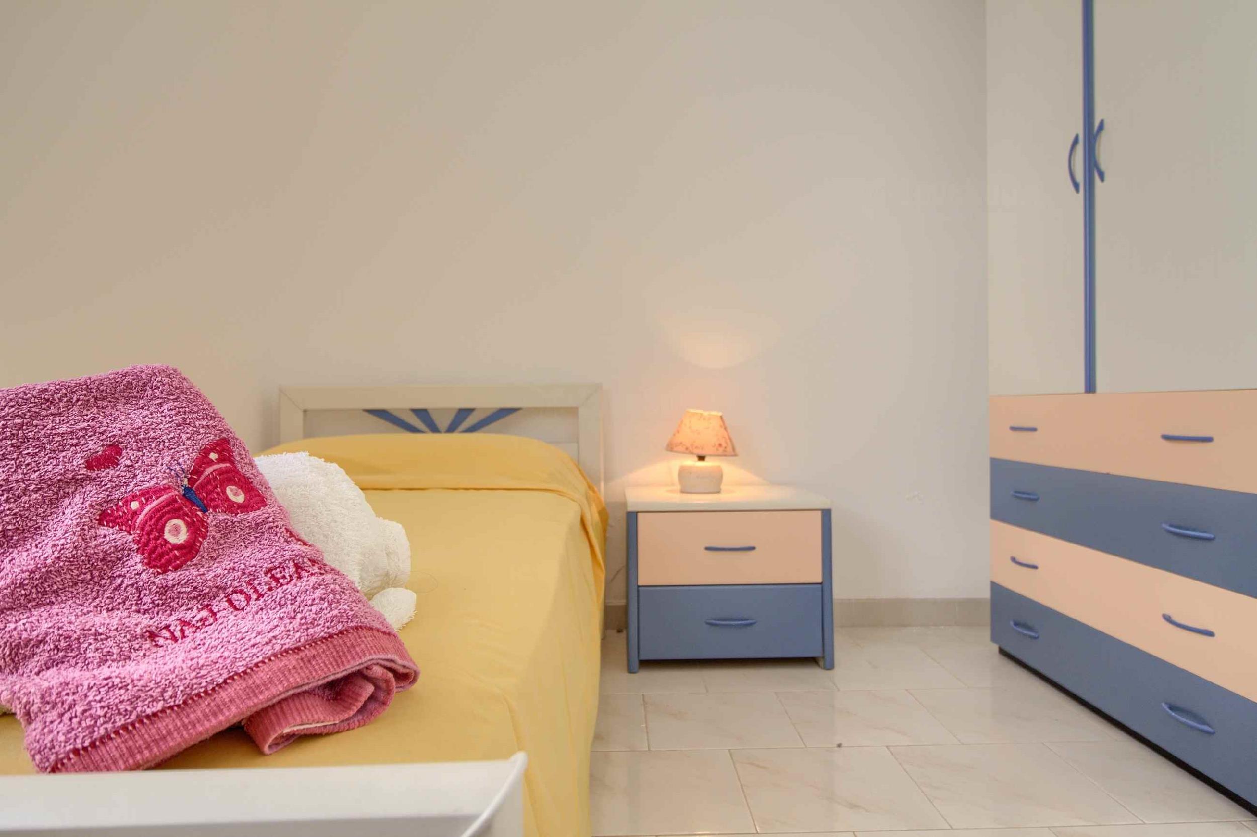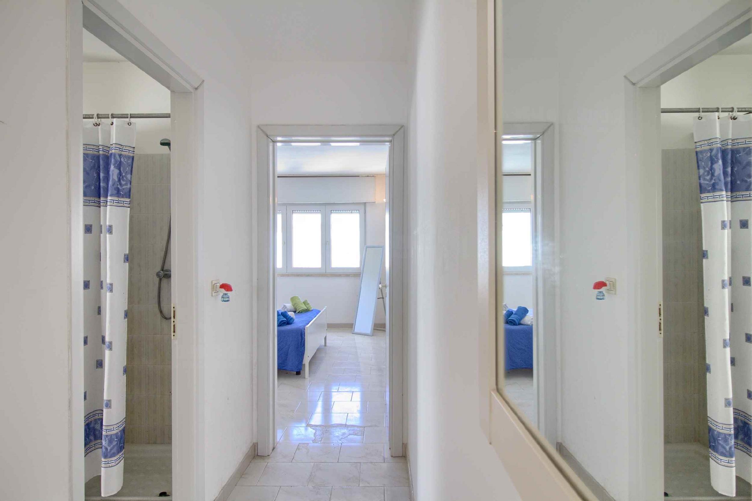 La dimora ha un balcone fronte mare ben arredato da cui poter osservare il mare e l’intero piazzetta sotto casa. All’interno vi è un ampio e luminoso soggiorno con divano, tv e una piccola cucina con forno, dotata di ogni utensile. Da qui, stando comodamente seduti sul divano, si può godere di una vista unica sul mare e sulla spiaggia circostante. La zona notta ha due camere da letto, una doppia e l’altra matrimoniale, questa molto spaziosa. Infine un bagno completo di servizi con doccia e lavatrice.