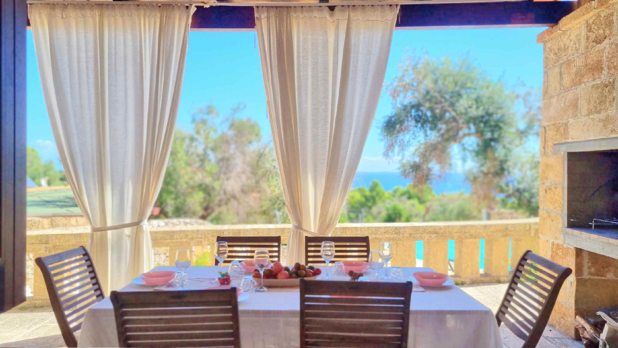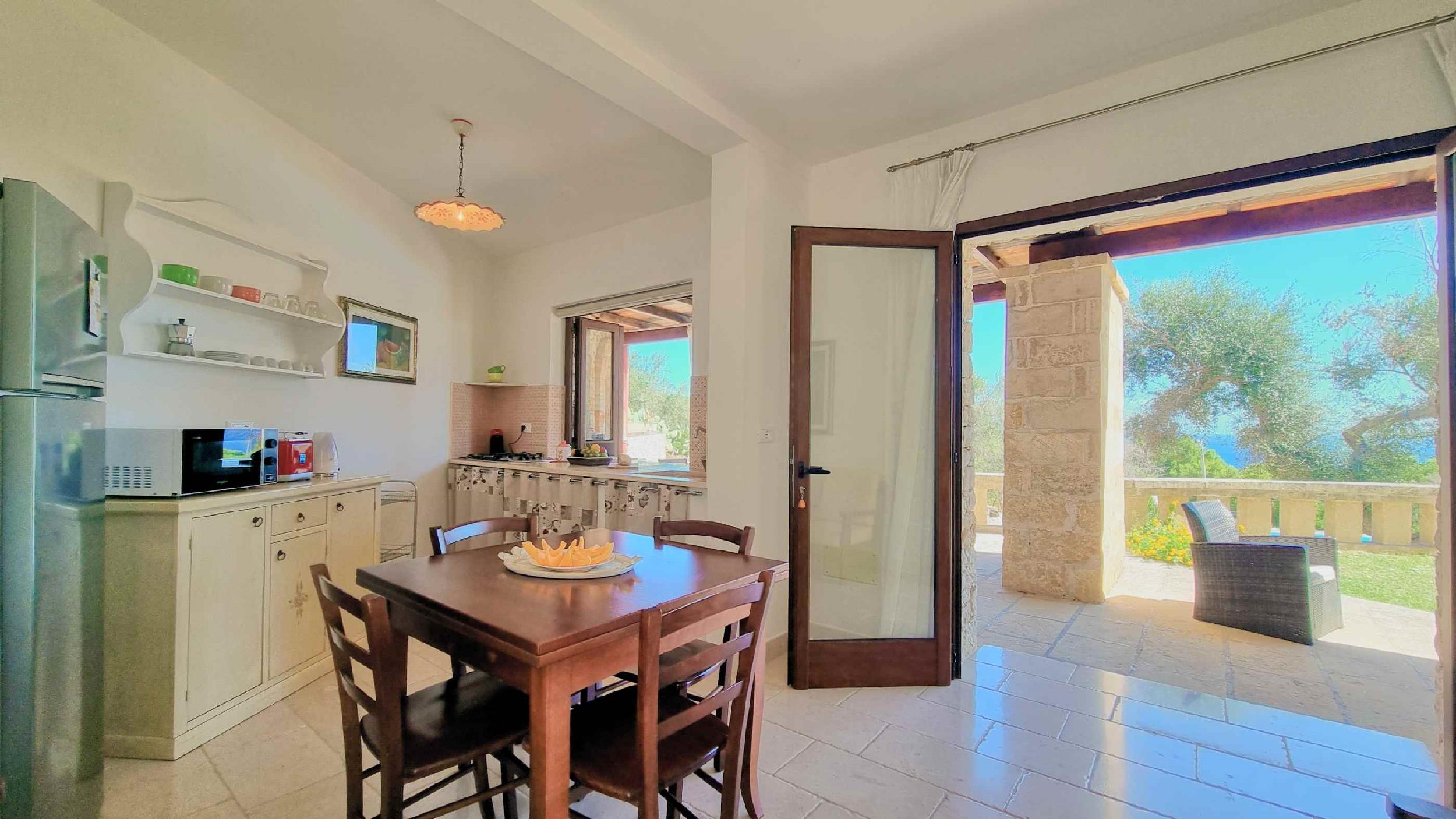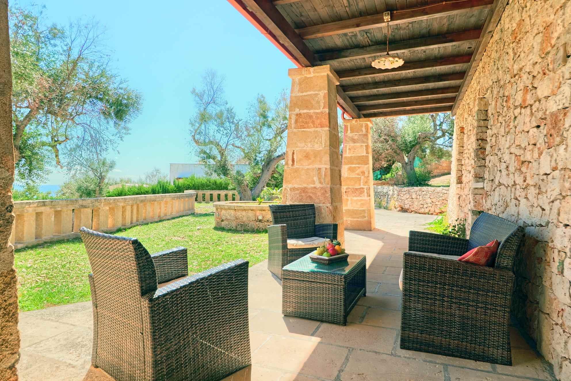 Lo spazio esterno di pertinenza, con vista mare, consente di trascorrere all’area aperta le giornate d’estate, trovando ristoro sotto l’ombra di maestosi alberi di ulivo.