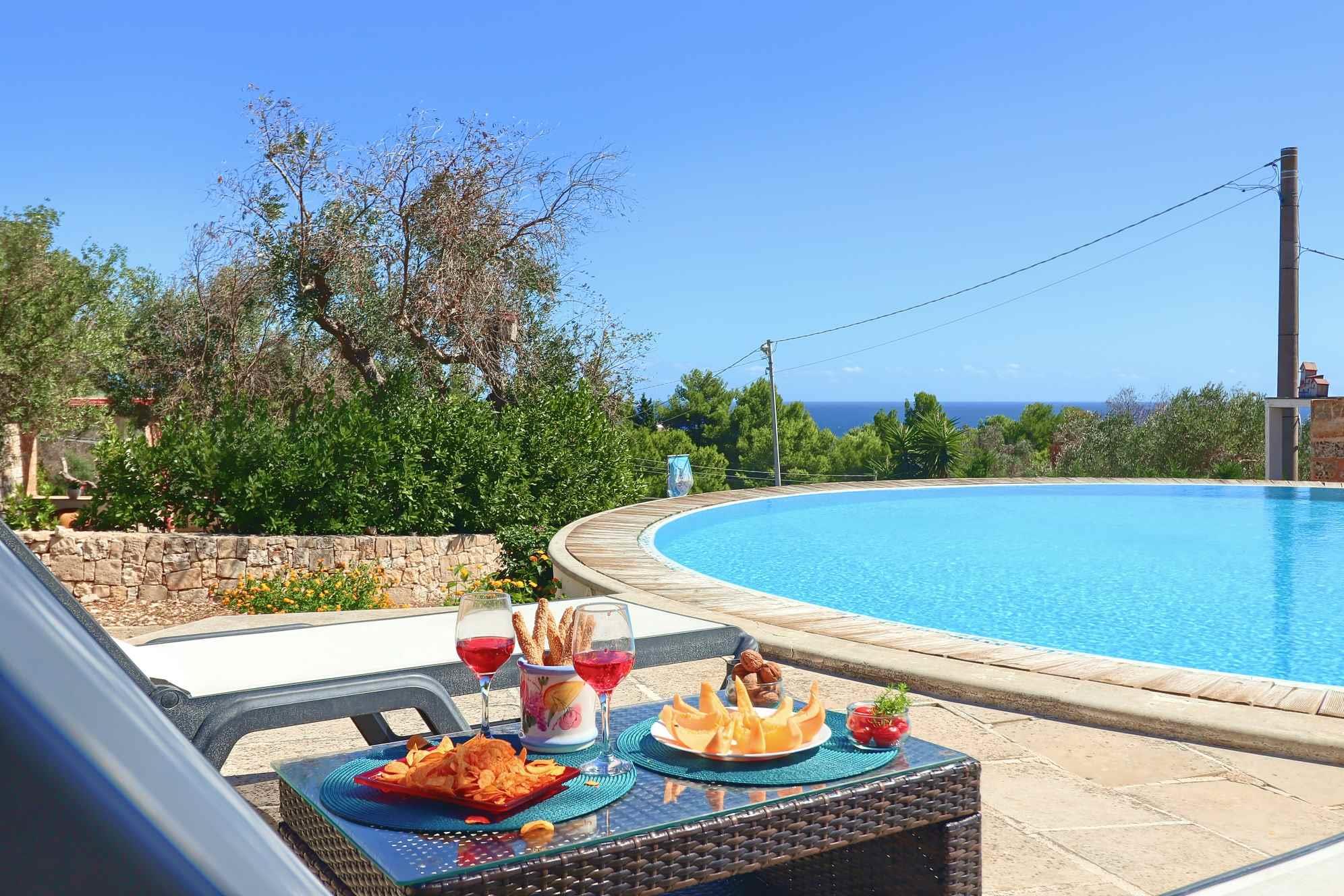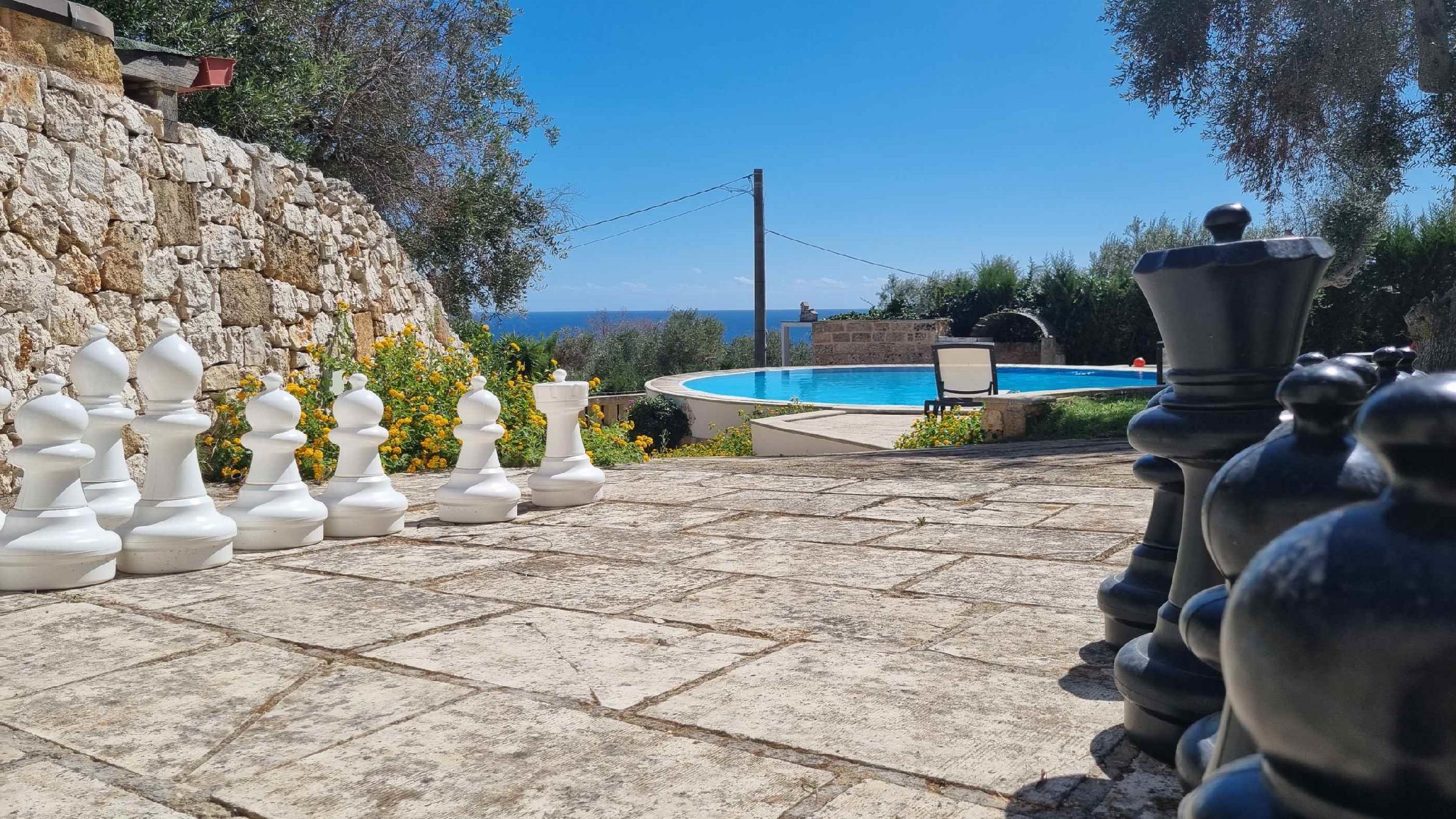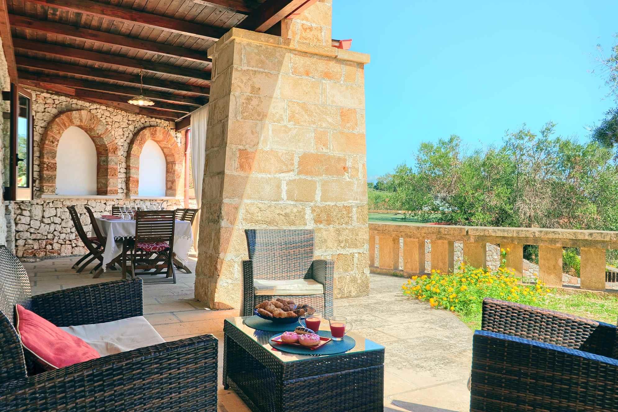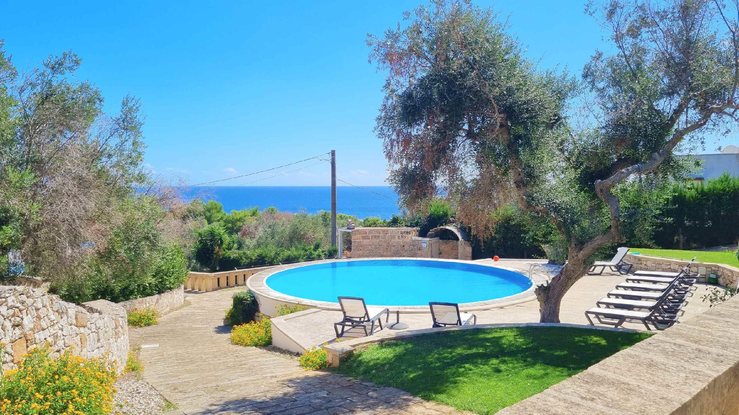 Lo spazio esterno di pertinenza, con vista mare, consente di trascorrere all’area aperta le giornate d’estate, trovando ristoro sotto l’ombra di maestosi alberi di ulivo.