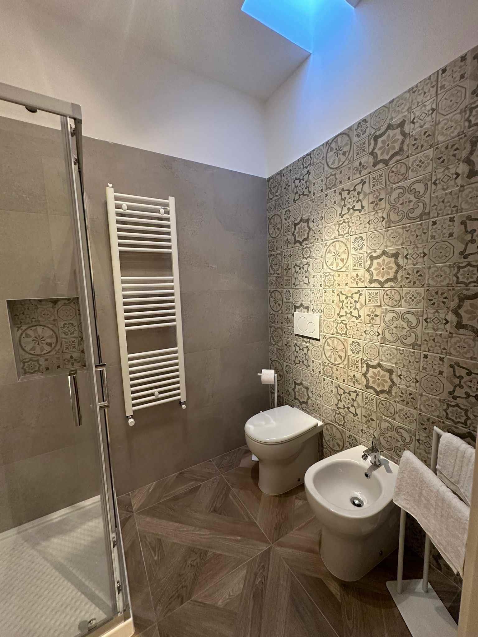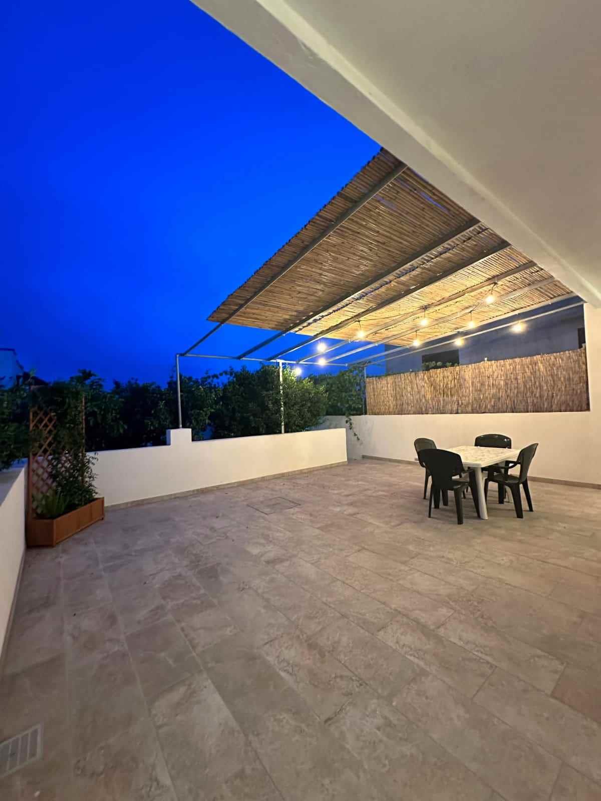 La casa dispone di 4 camere da letto (tutte climatizzate e personalizzate con gusto) di cui 2 triple e 2 camere matrimoniali, 5 bagni completi (solo un bagno non ha il bidet), ampio living climatizzato con tv, divanetto, cucina a gas con penisola e accesso diretto al cortile con pergola riservata e attrezzata per mangiare all’aperto.