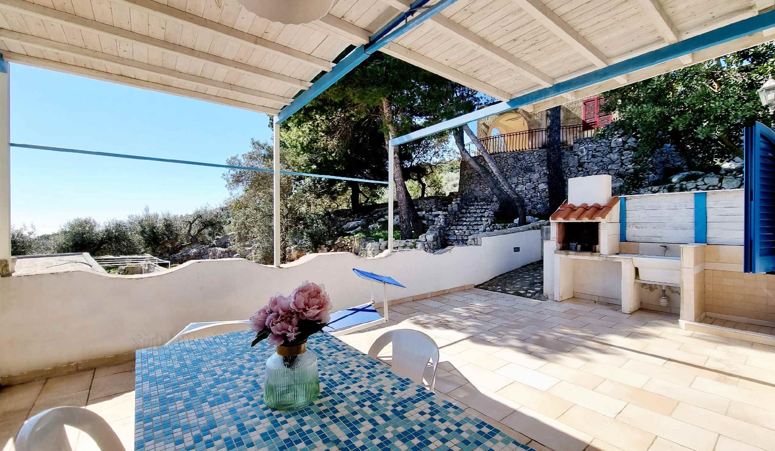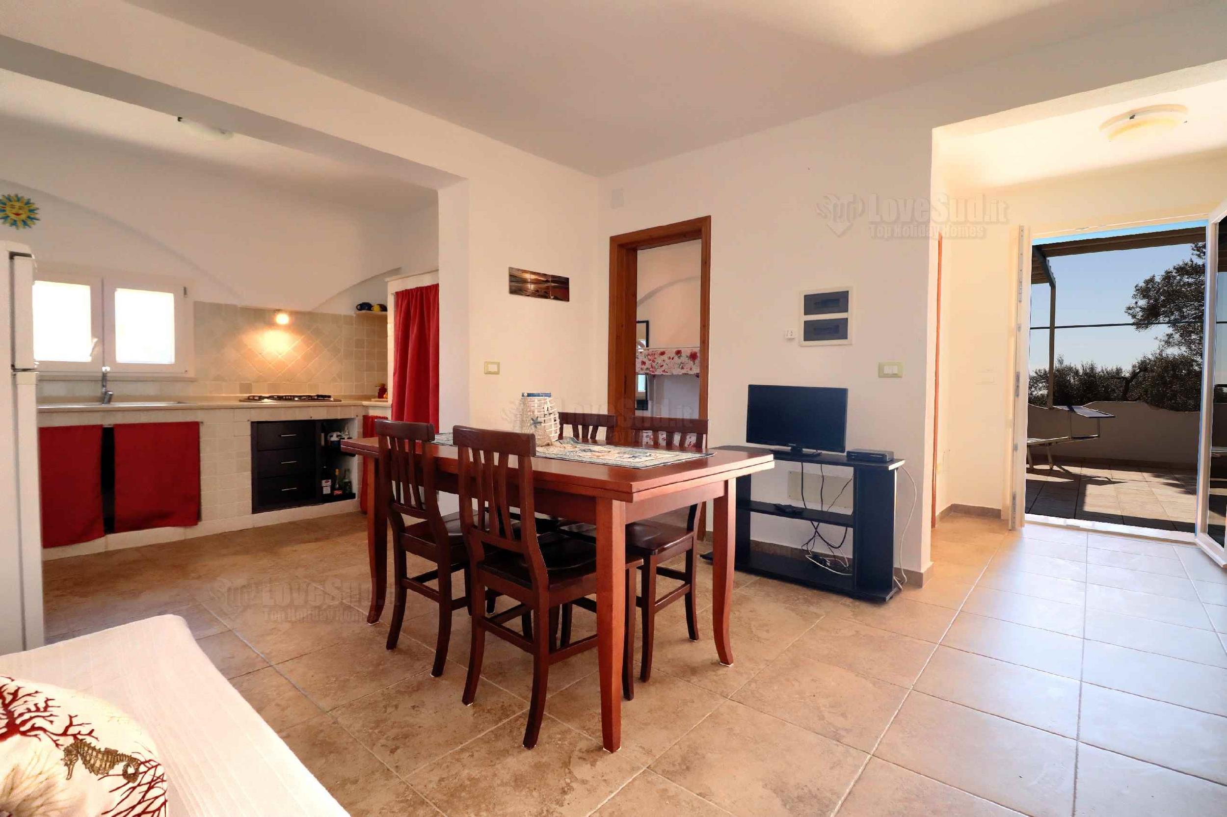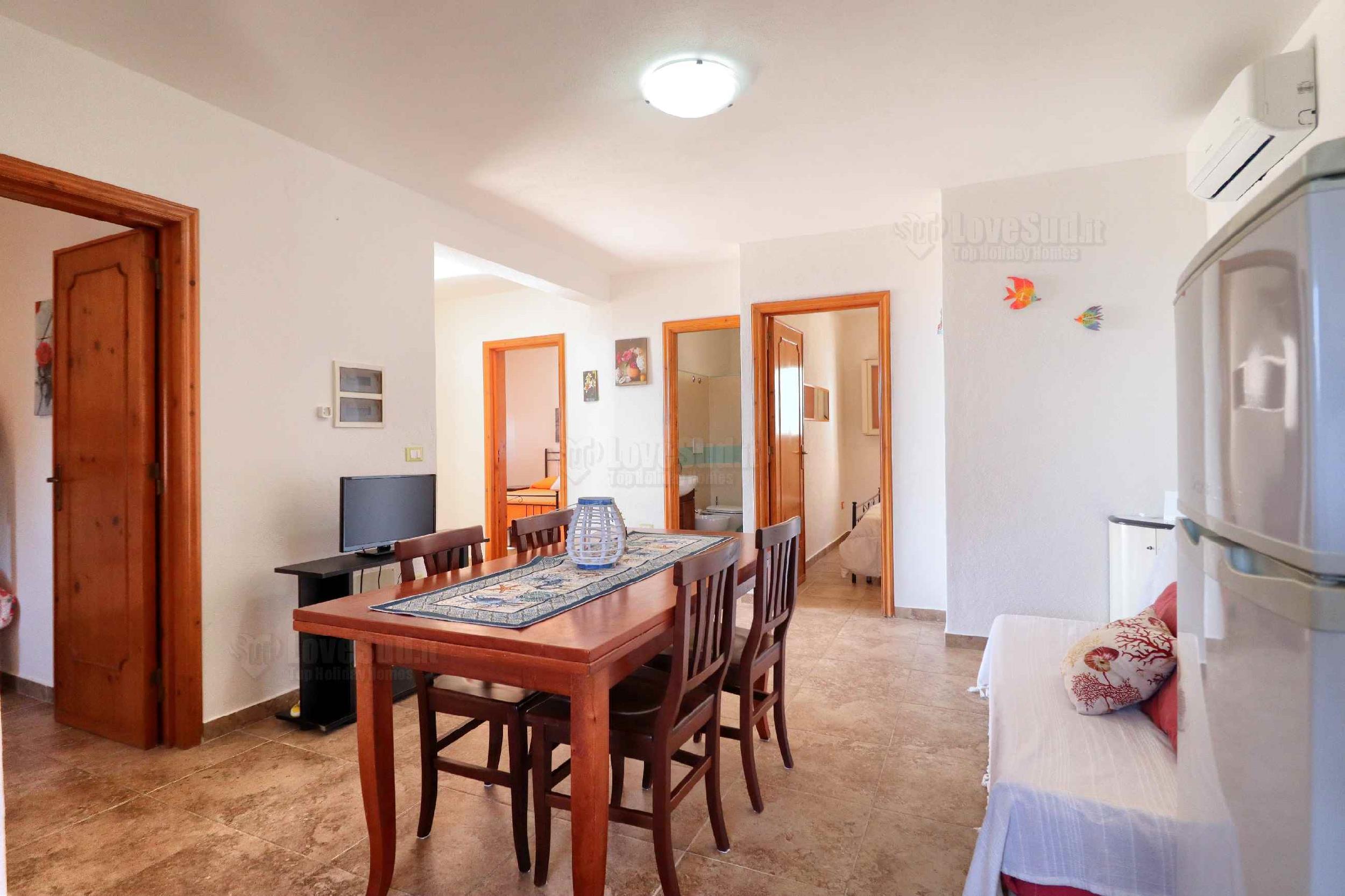 L’ultima casa è proprio casa Roberta che rispetto alle altre due, ha una posizione privilegiata in quanto più alta e con una più ampia vista sul mare. La dimora gode di una graziosa veranda con tavolo, sedie, barbecue lavabo e una doccia esterna. All’interno vi è un bel living climatizzato dotato di tv, divano letto matrimoniale e una cucina in muratura. La zona notte è formata da tre camere da letto, due matrimoniali e una con letto a castello. Infine due bagni: uno completo di servizi e l’altro costituito solo da lavandino e water.