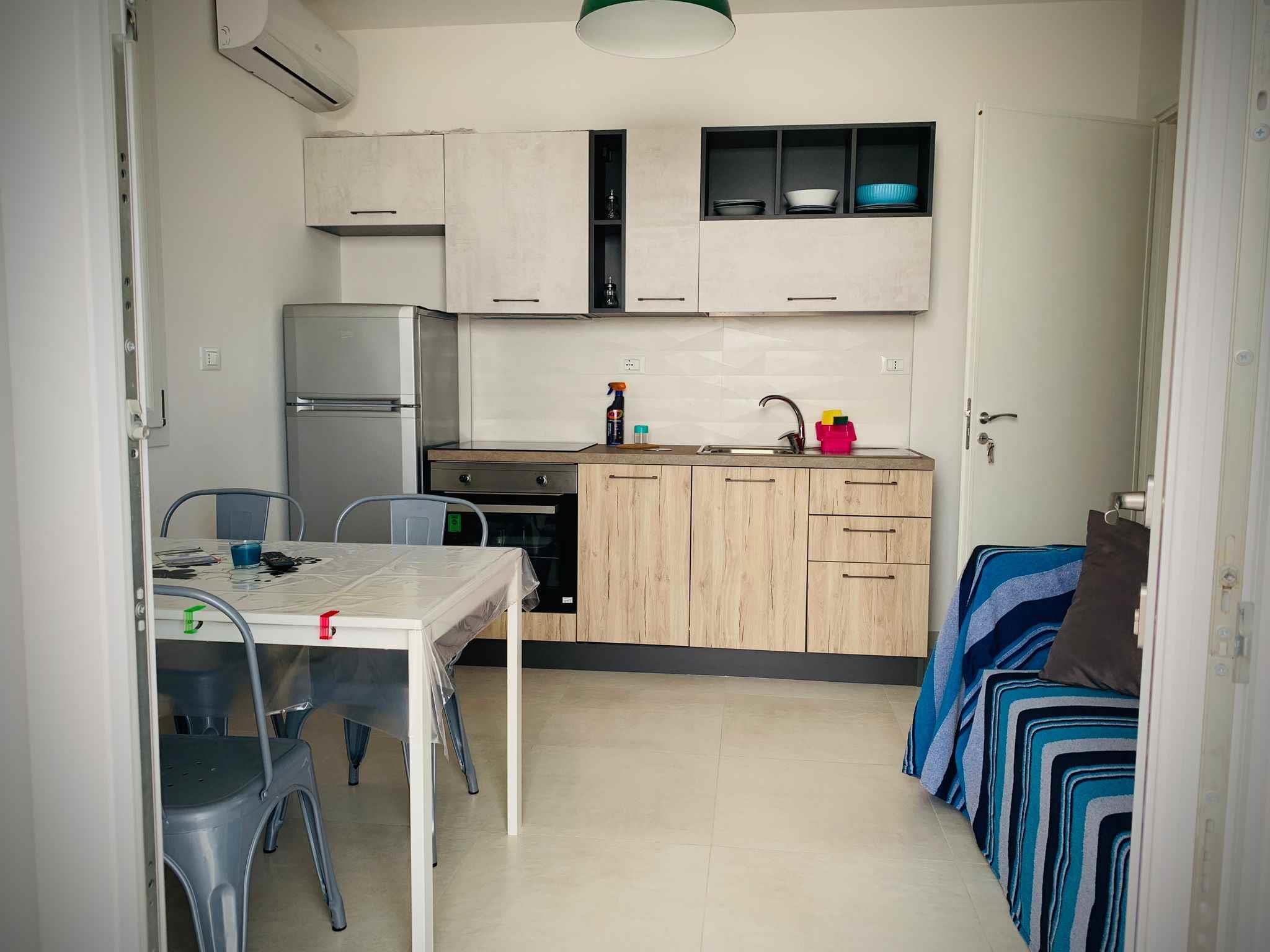 L’appartamento si sviluppa al piano rialzato e si compone di una living area con cucina attrezzata, lavastoviglie, cucina ad induzione, un bagno con box doccia e due camere da letto.