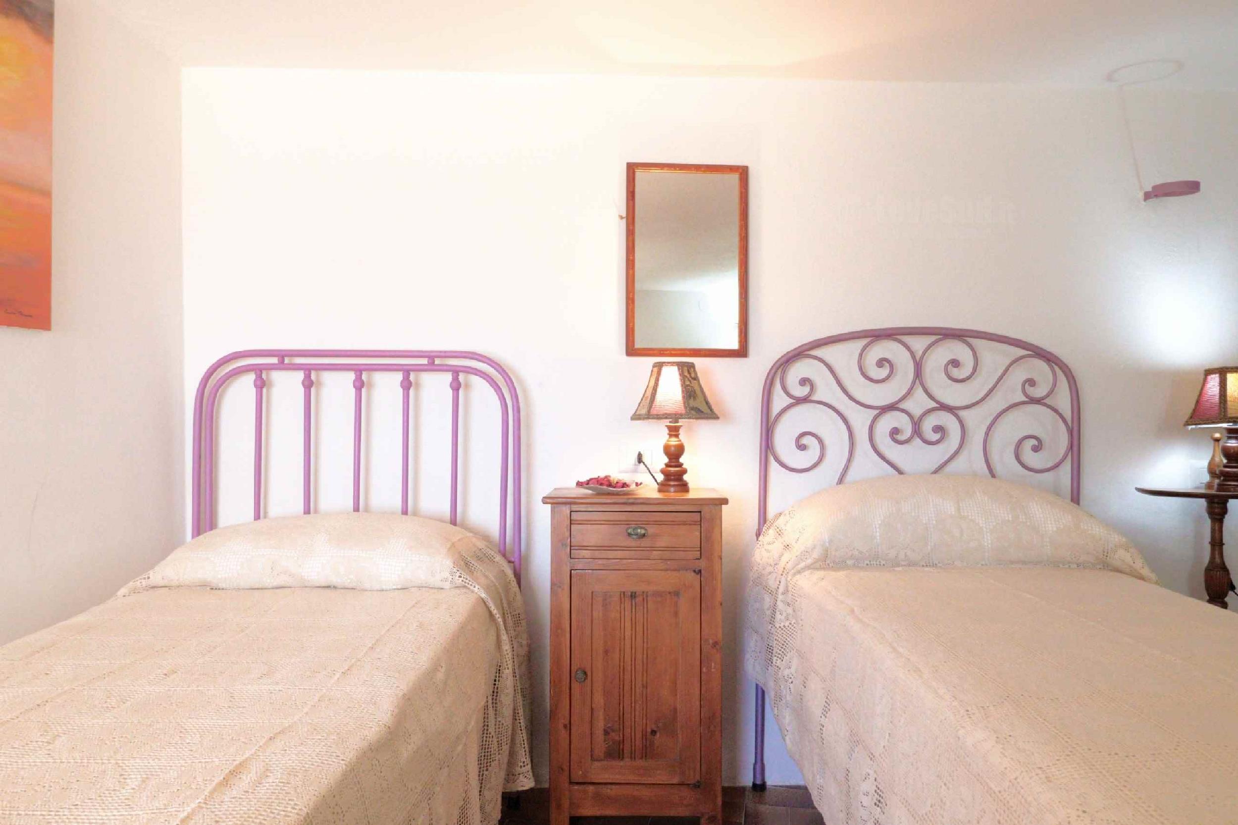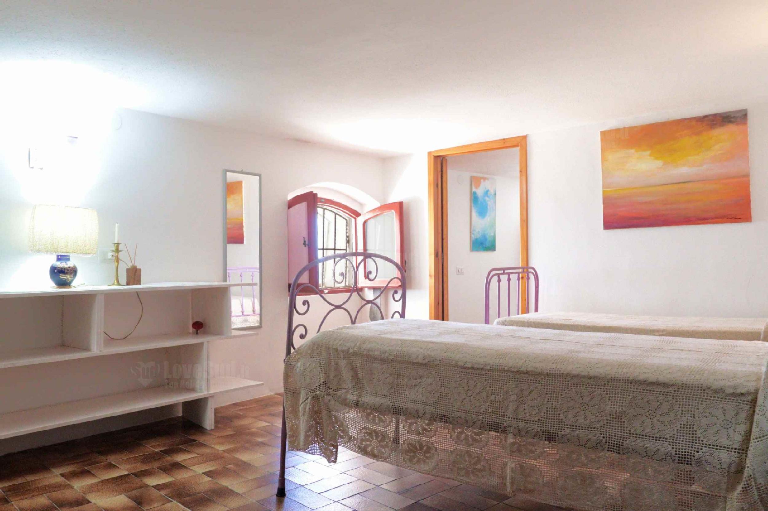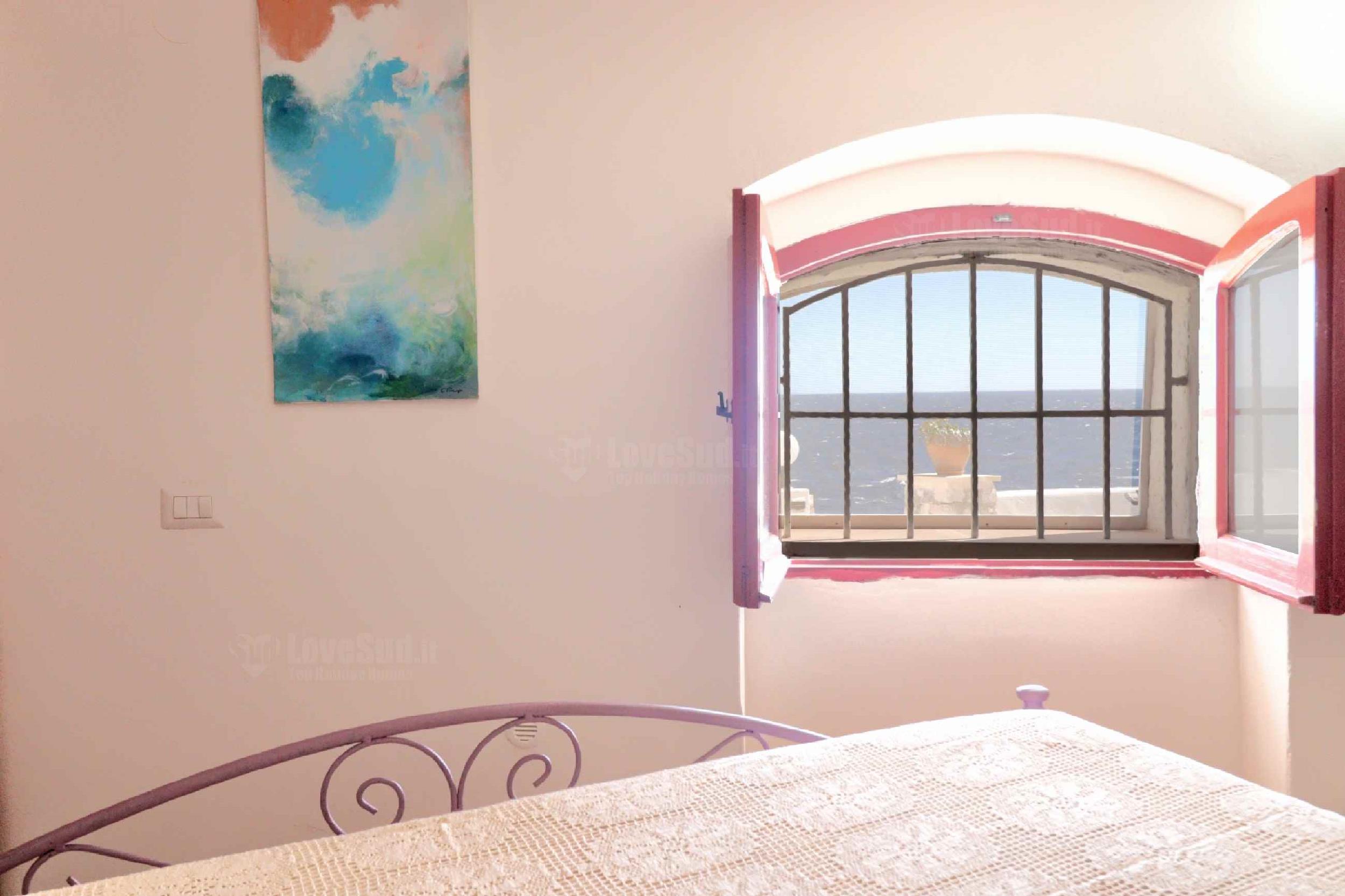 La zona notte è formata da due camere da letto comunicanti, una matrimoniale e l’altra con due letti singoli di misure diverse. Infine c’è un bagno nuovo e completo di tutti i servizi con box doccia. A rendere unica dimora degli artisti è la possibilità di vedere il mare da ogni sua piccola finestra. L’abitazione essendo prima un trullo ne ha mantenute le sue caratteristiche strutturali ed ha quindi delle mura molto spesse capaci di offrire sempre un ambiente fresco.