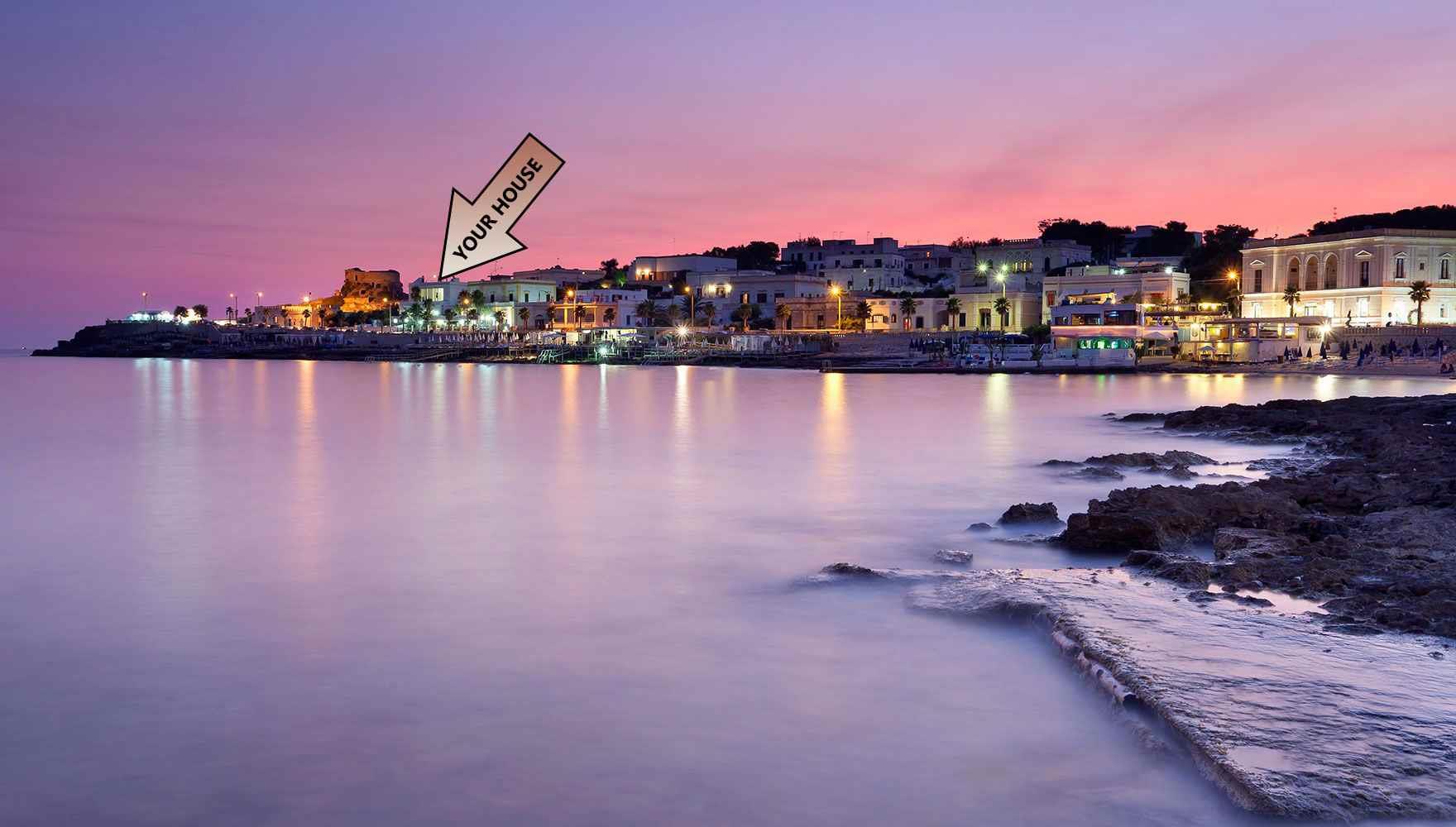 The soft lights of the beautiful Santa Maria Leuca lighthouse are the backdrop to one of the most impressive and historic villas in southern Salento. Villa Lucia stands out with its elegance on the city’s seafront. The house, with its elegant façade, enjoys a splendid and large terrace that directly overlooks the sea from which you can admire a unique view of the most extreme city in southern Italy. The terrace, finely furnished with a large table, an umbrella for sunny days, with deck chairs and sun loungers, allows moments of pure and pleasant relaxation. Inside, the house has a lovely air-conditioned living room and tv where, as a frame, there is the beautiful fireplace with an elegant wooden table and a comfortable sofa. The bright and fully equipped built-in kitchen, also with dishwasher, has a French window that opens directly onto the splendid terrace. The sleeping area is made up of three bedrooms, two double bedrooms and an additional blind room where a bedroom with a single bed has been created. Finally, a bathroom complete with amenities and shower. The air-conditioned master bedroom, also tastefully furnished, has a French window with mosquito net that leads to the external space to the side of the structure where there is the second bathroom with shower, sink and washing machine. It is worth highlighting that in this external area of the house there is a right of way.