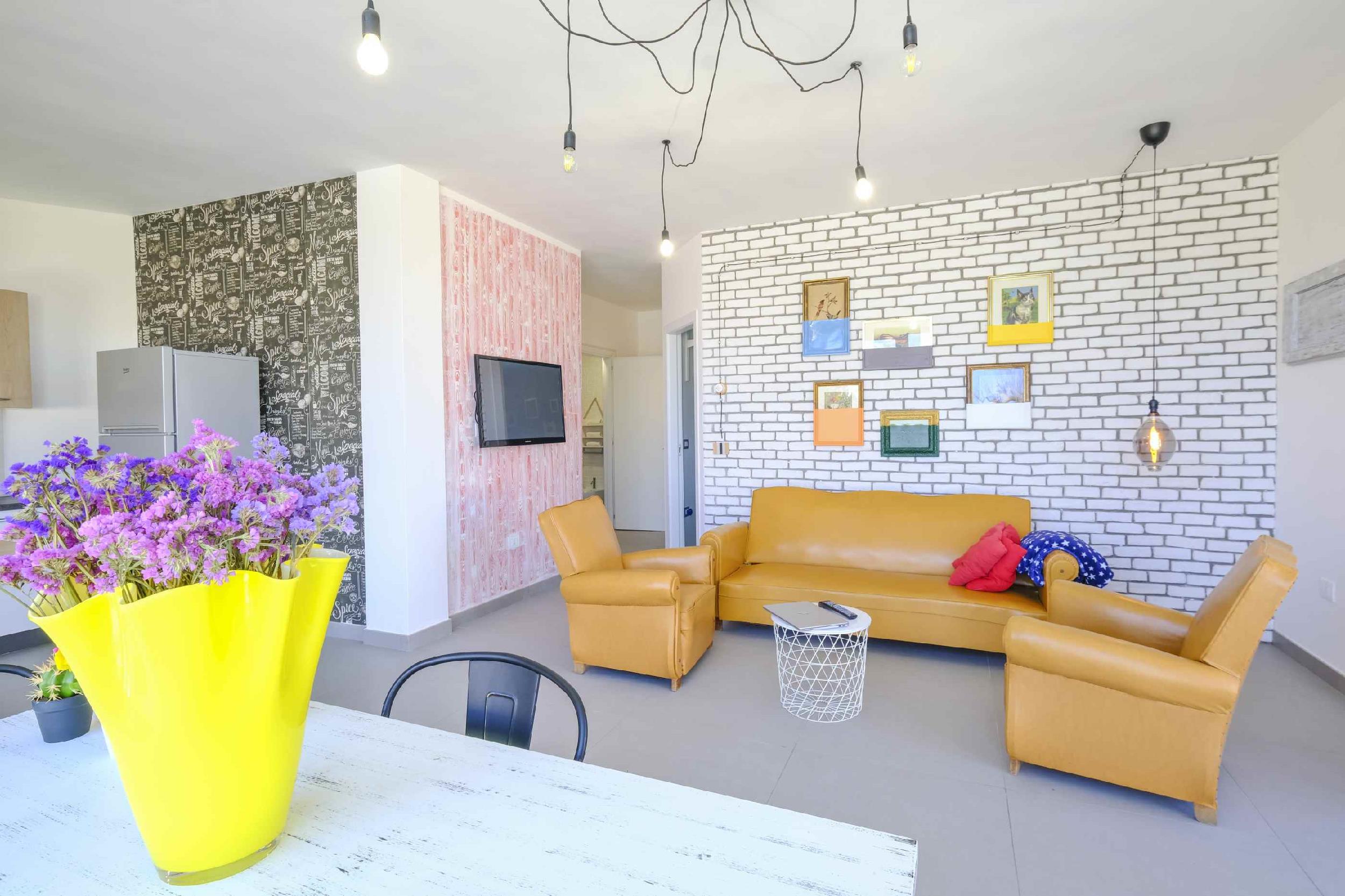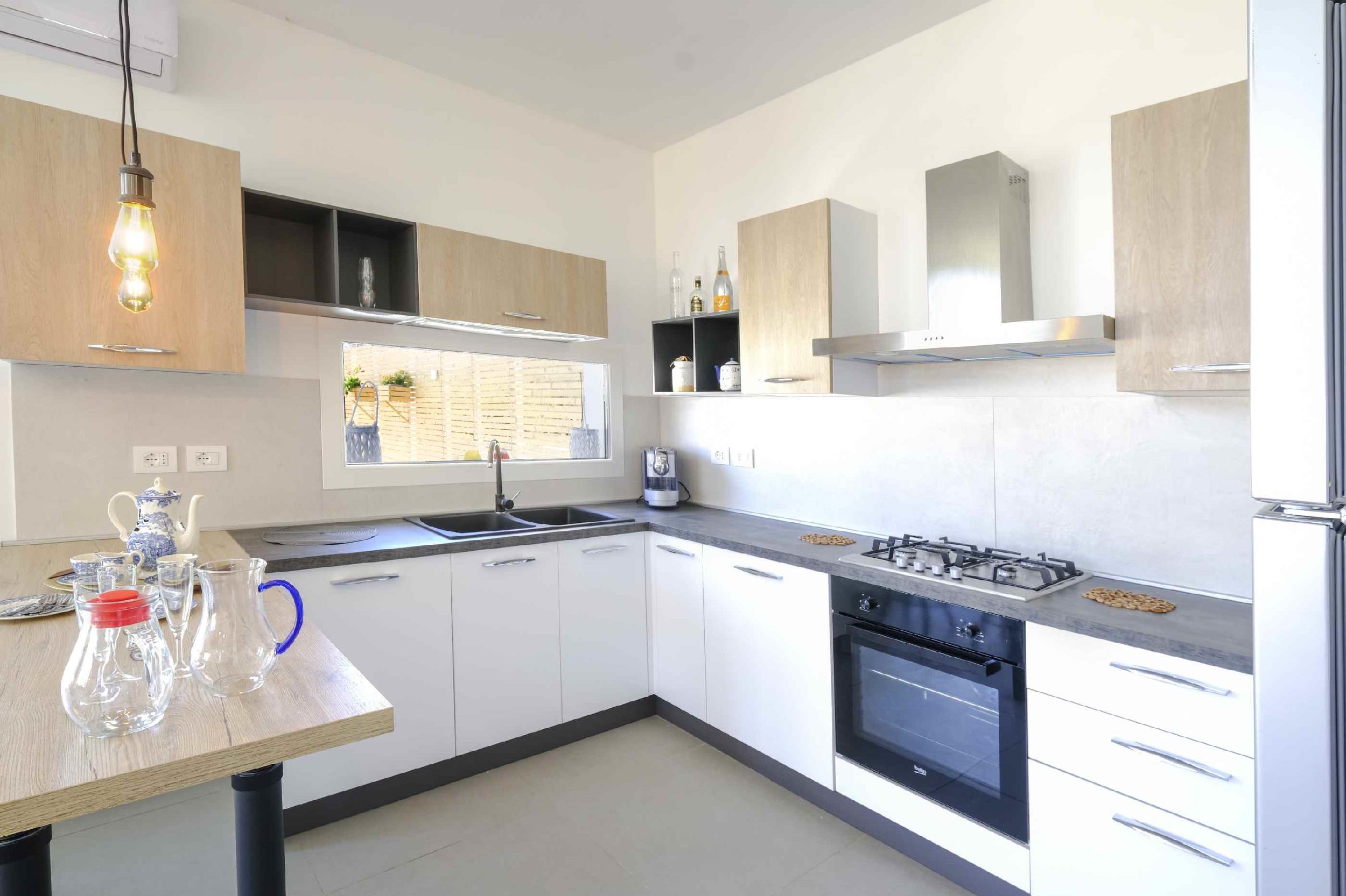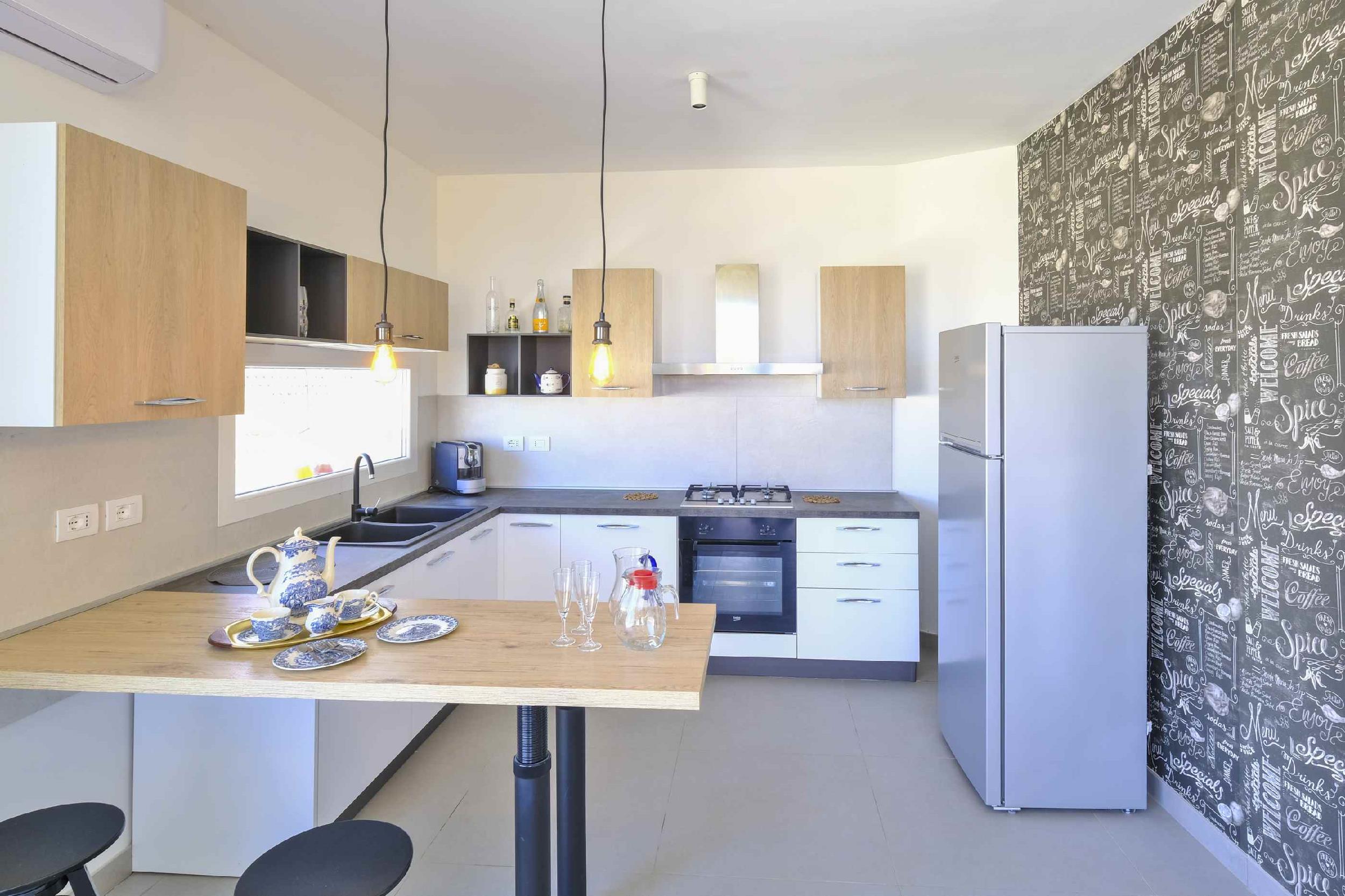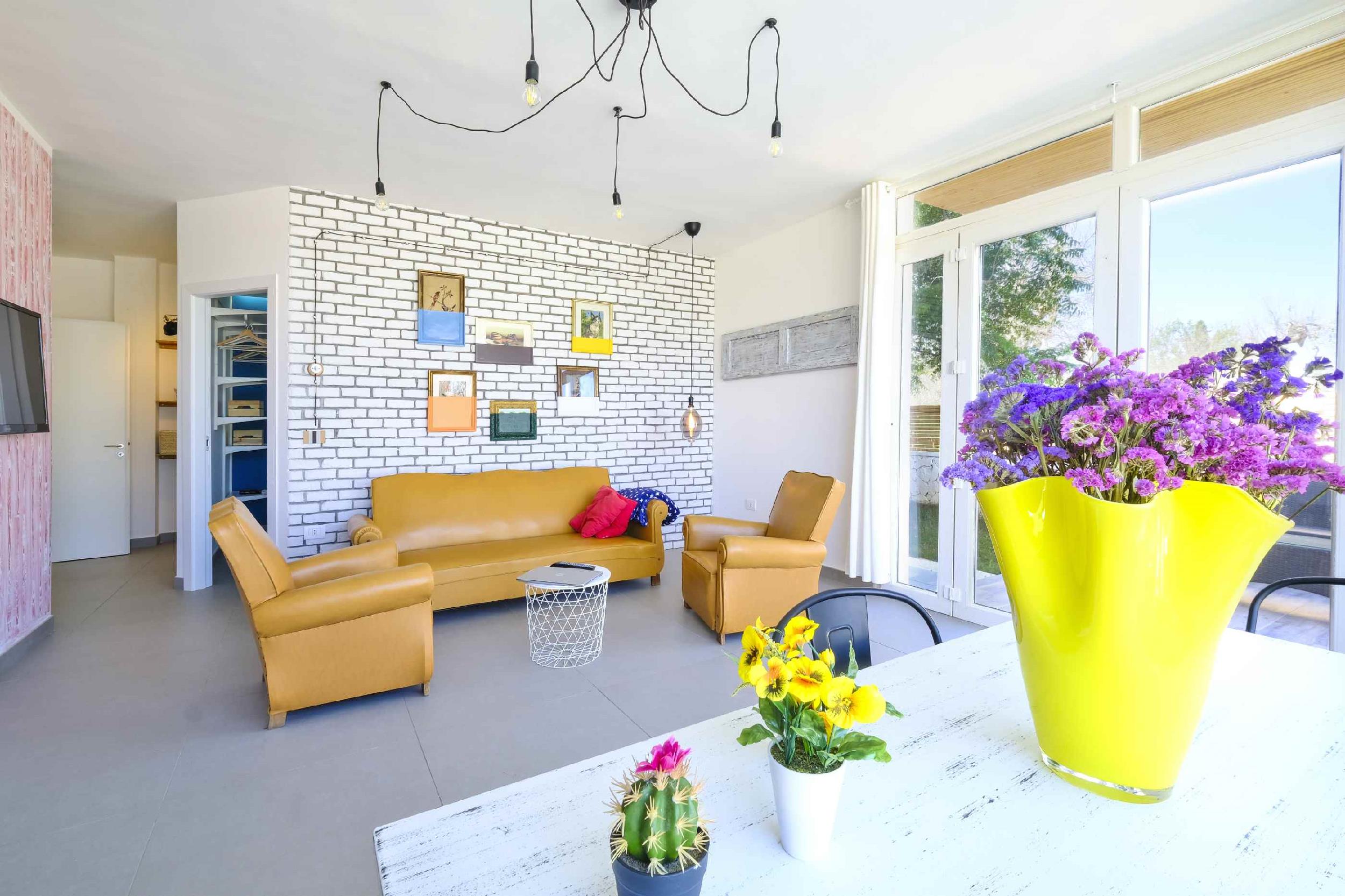Internamente troviamo un’ampia area living con cucina attrezzata, due camere matrimoniali climatizzate e un bagno completo.