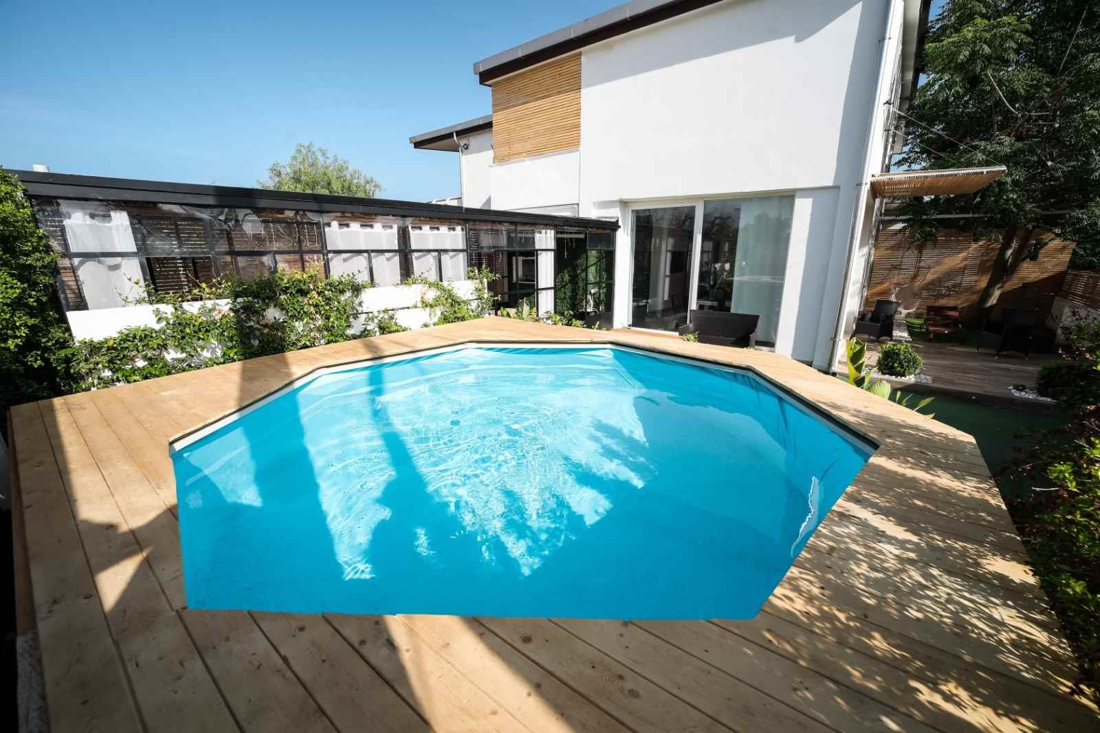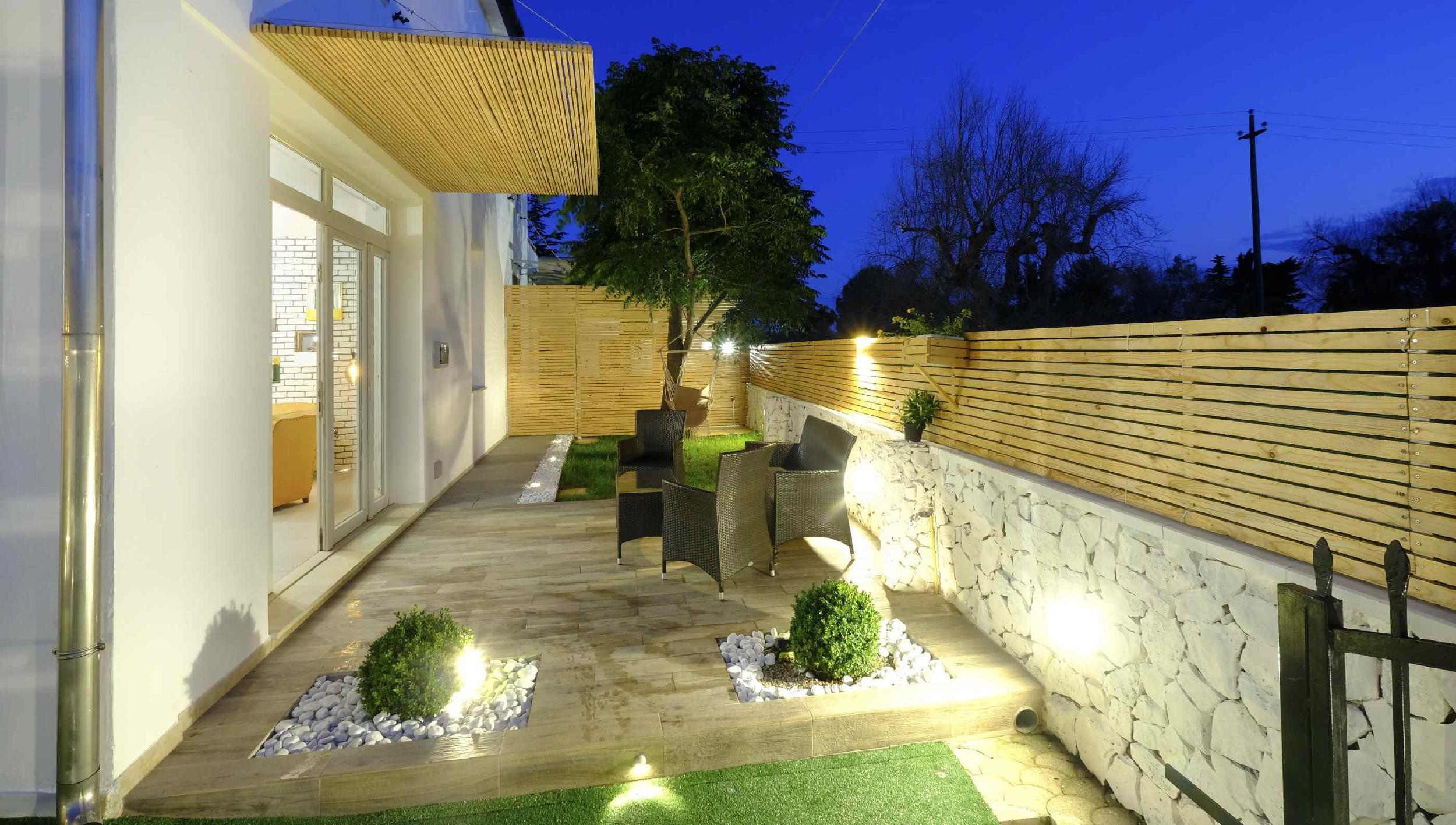 L’alloggio dispone esternamente di giardinetto riservato con posto auto, piscina fuori terra rivestita in legno e barbecue, oltre ad una bellissima area jacuzzi coperta con proiettore home cinema full hd.
