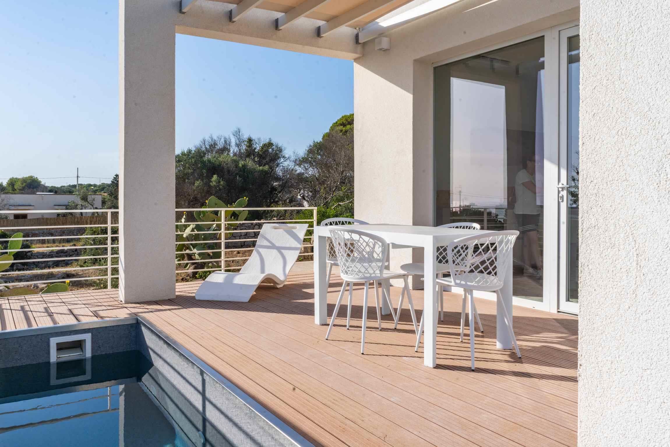 A pochi passi di distanza la litoranea che permette di raggiungere il centro di Leuca a 2 minuti in auto oppure le spiagge di sabbia a soli 5 minuti in auto. Il primo accesso a mare dista soli 280 mt: punto poco agevole con scogliera bassa ma molto affascinante per chi ama nuotare, fare snorkeling o andare in giro in canoa o sup (nelle vicinanze presenti diverse grotte affascinanti tra cui la grotta più bella dell’intera costa del Capo di Leuca: Grotta delle 3 porte).