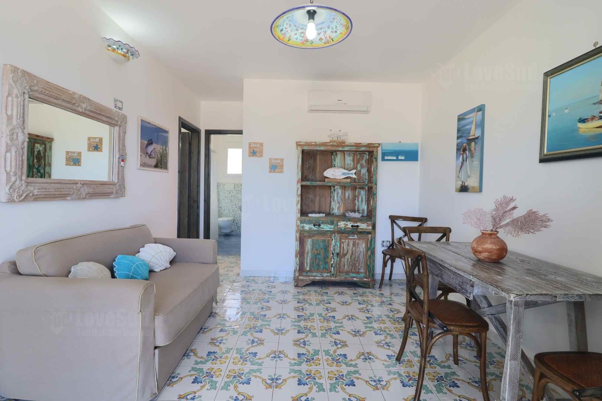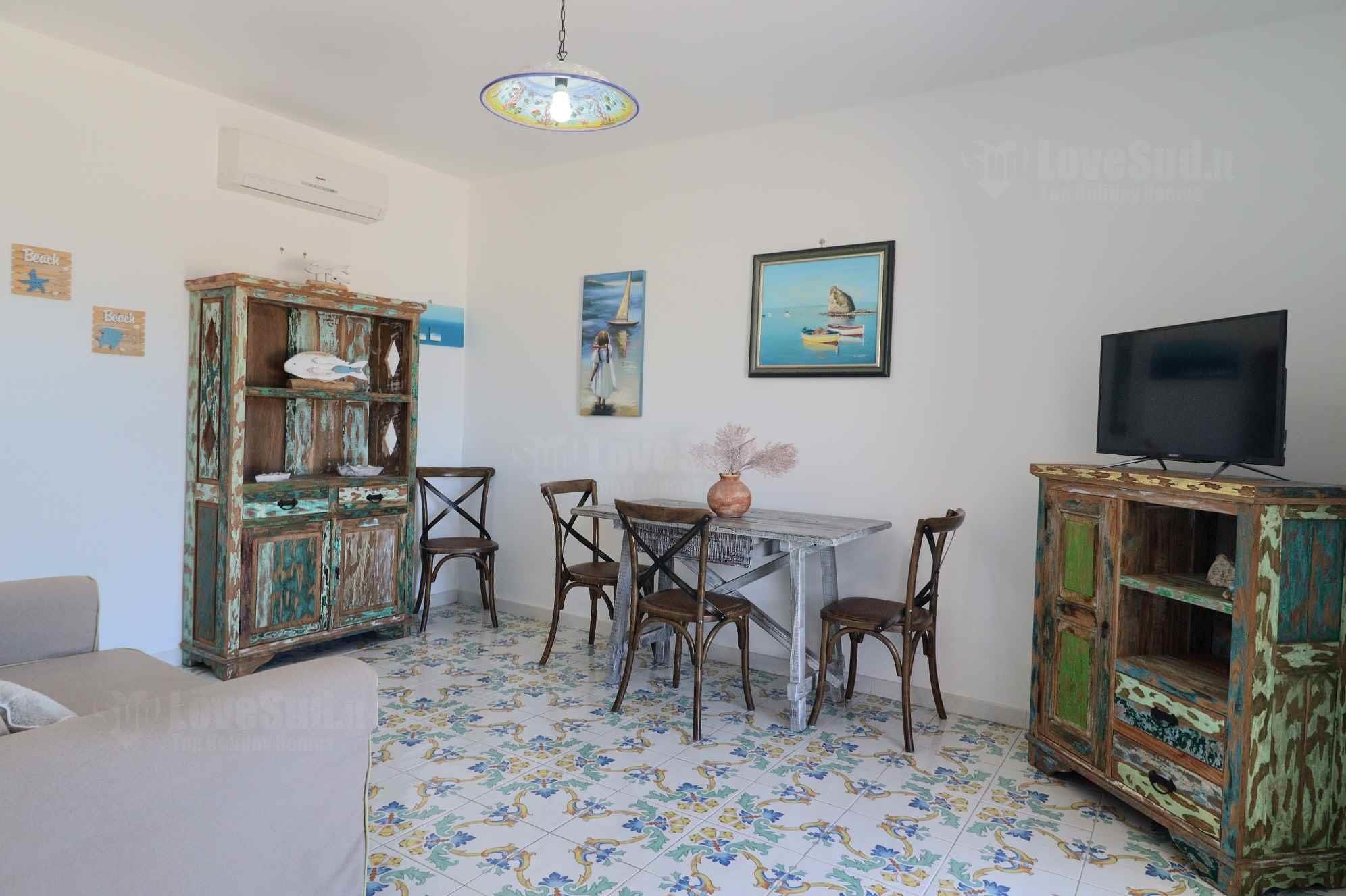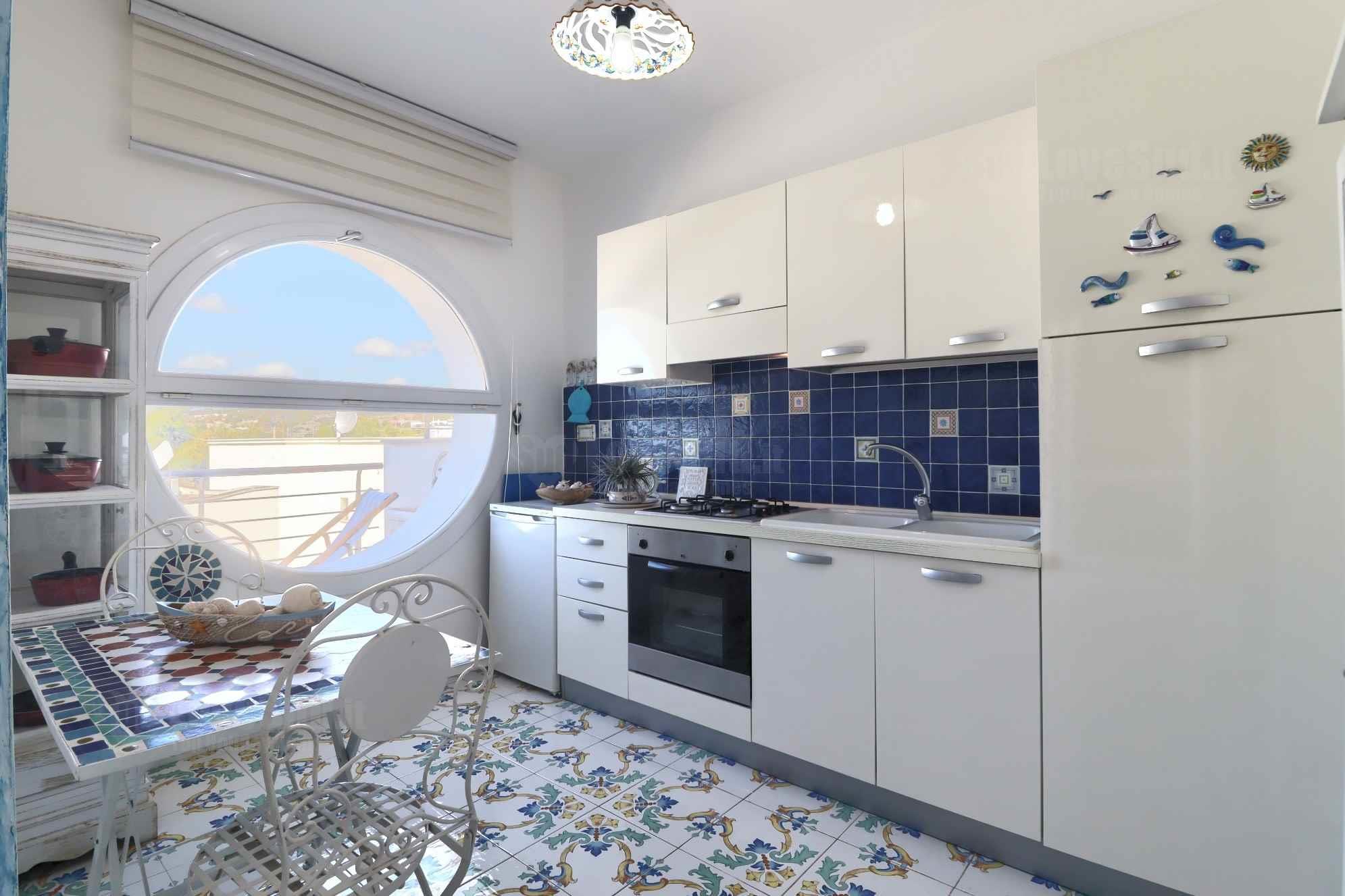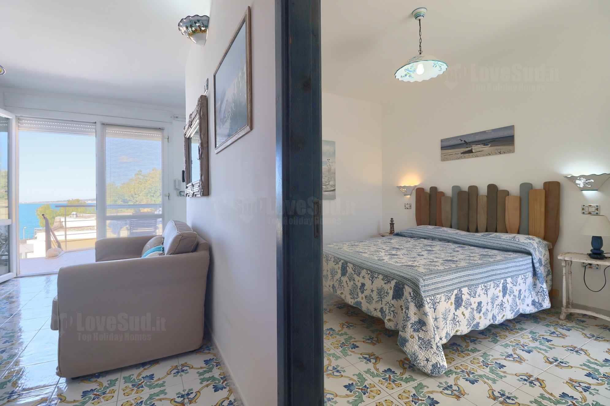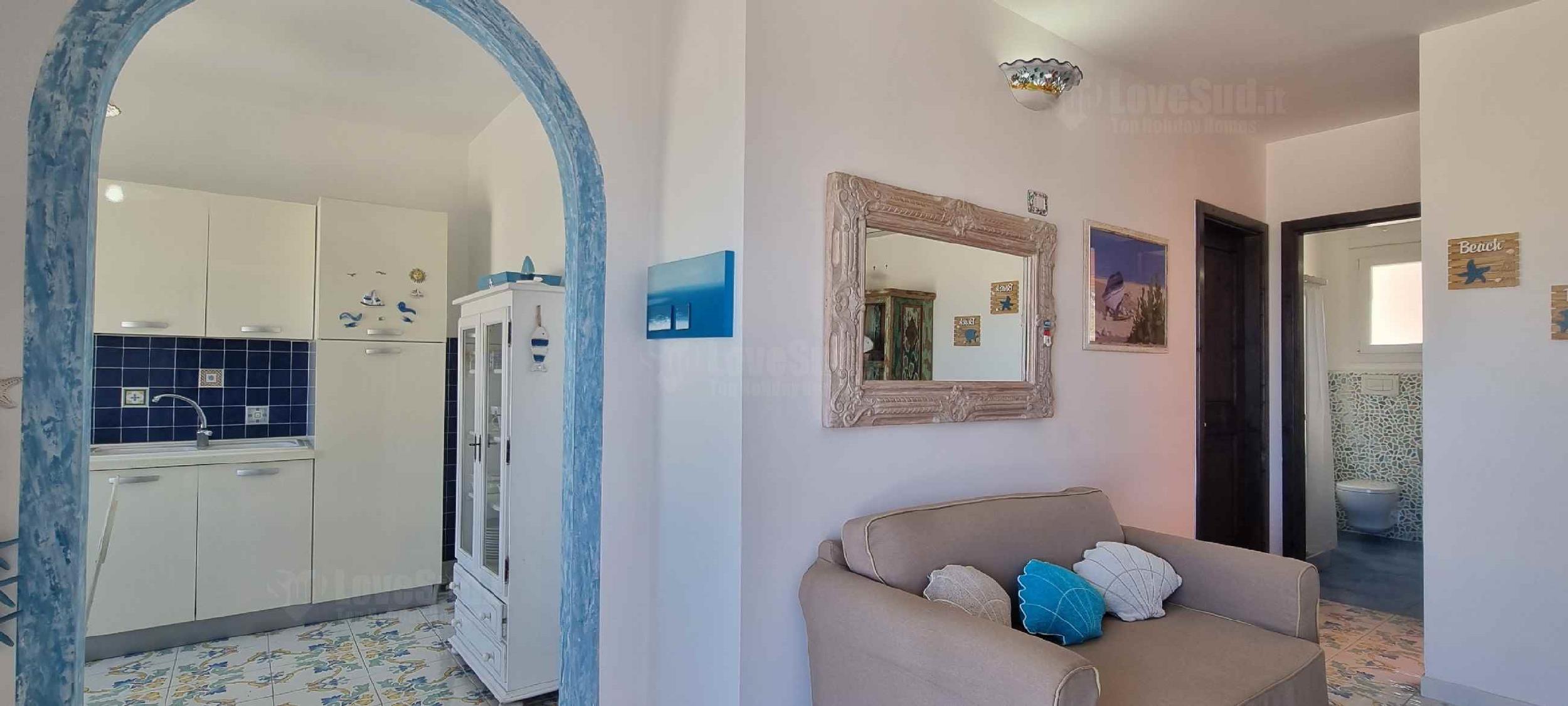 La dimora gode di un bel terrazzino vista mare finemente ammobiliato per godere appieno dei lunghi tramonti di cui la baia è particolarmente famosa. Madame si caratterizza per la particolarità del suo arredamento dove il mare primeggia in tutte le sue sfumature: dalla testata della camera patronale all’oggetistica del living o della cucina, ogni dettaglio richiama le bellezze della località in cui si trova. All’interno la casa ha un luminoso soggiorno climatizzato vista baia dotato di divano, tv e wifi, sempre qui vi è un’adorabile cucina con ampia finestra ad oblò dove anche da qui si può godere della vista del mare. La zona notte è formata da due camere da letto, una matrimoniale con balcone e l’altra con letto ad una piazza e mezza, infine un bagno completo di servizi con doccia. Wi-Fi disponibile in tutta la casa. Presenti zanzariere ovunque.