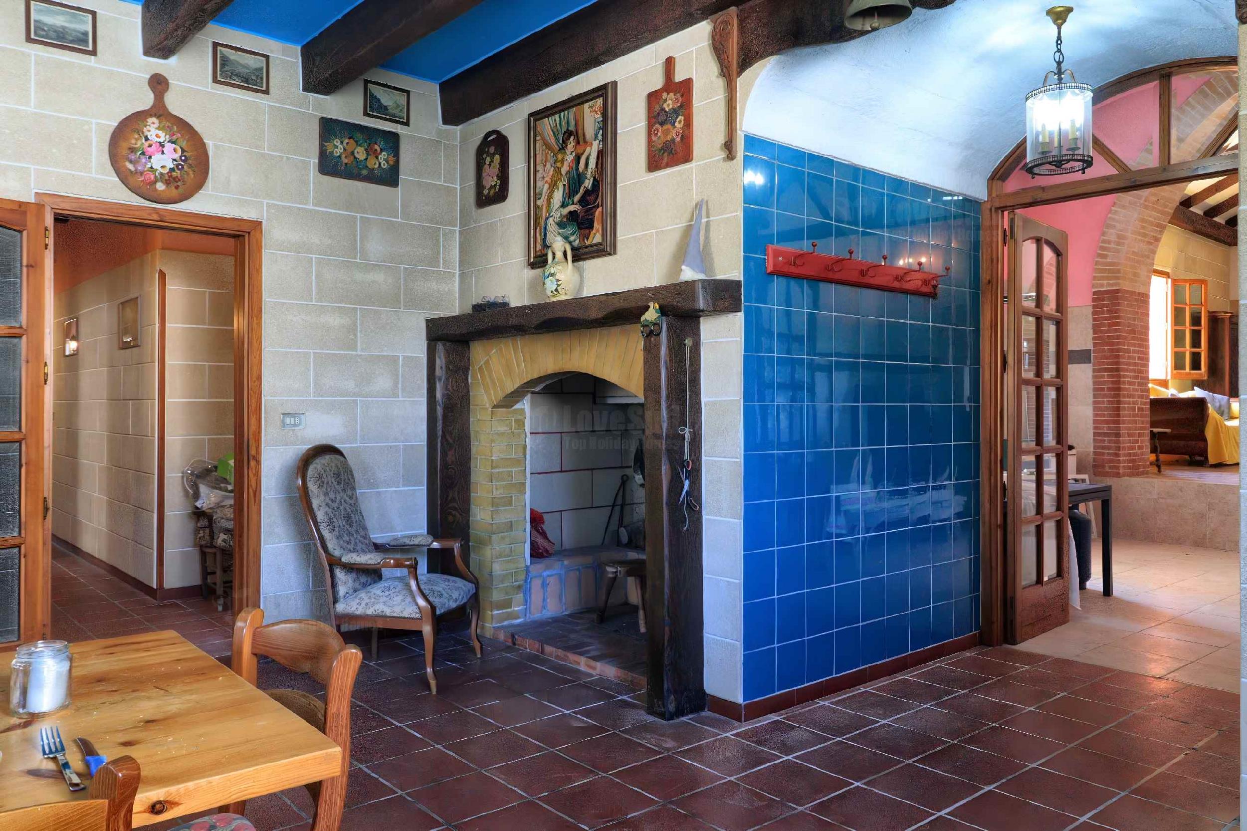 Piano Terra: Accogliente living area con cucina, ampio tavolo da pranzo, camino e TV. La cucina si collega a un spazioso e caratteristico soggiorno dalle ampie volte, arredato con divanetti e dominato da un suggestivo camino frontale (decorativo).