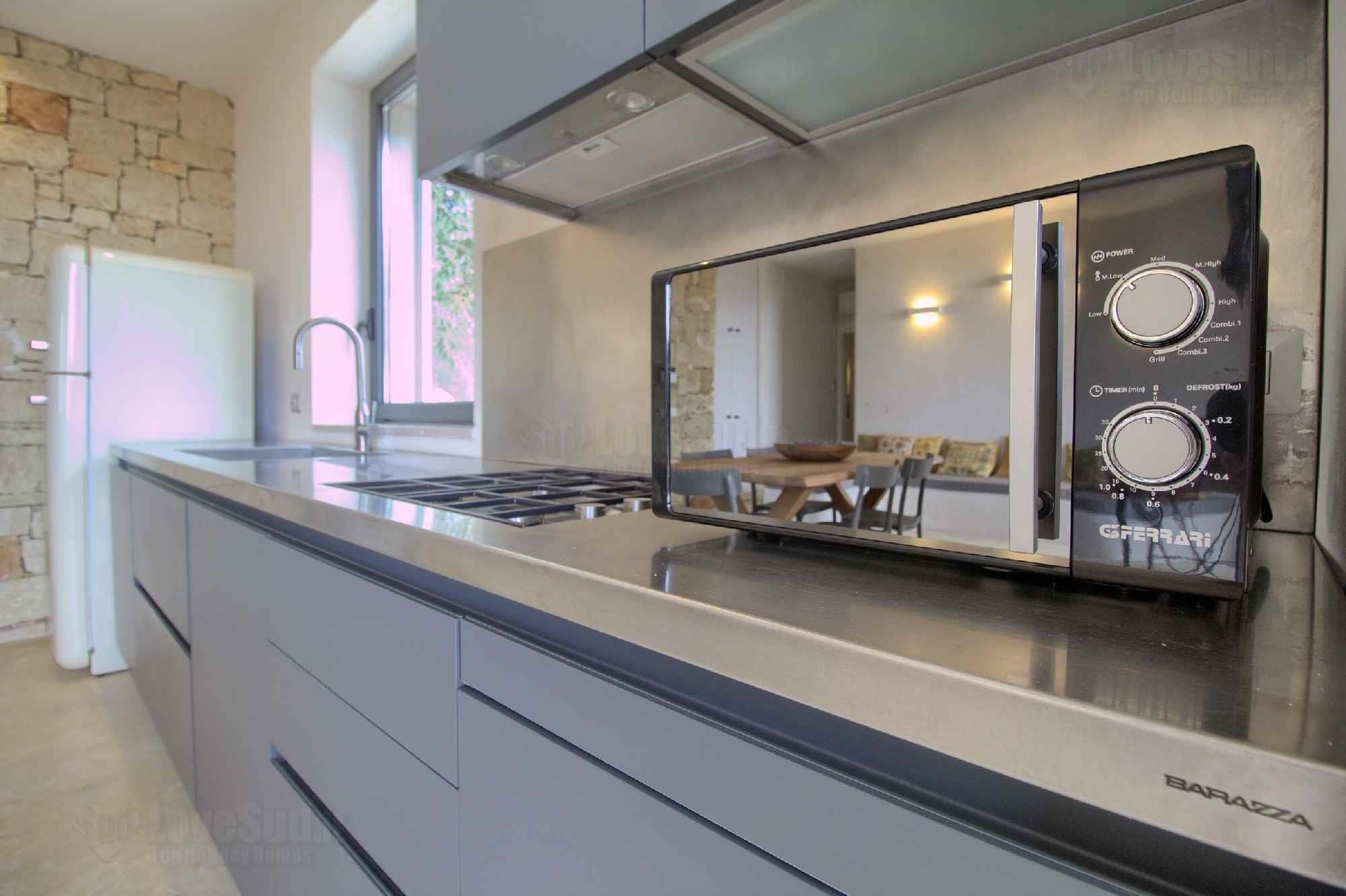 La bella cucina, spaziosa e moderna, è dotata di ogni servizio ed è stata studiata per rendere più semplice, oltre che piacevole, la preparazione dei pasti. Un’area living arredata egregiamente dove il mare quasi entra in casa regalando momenti indimenticabili.