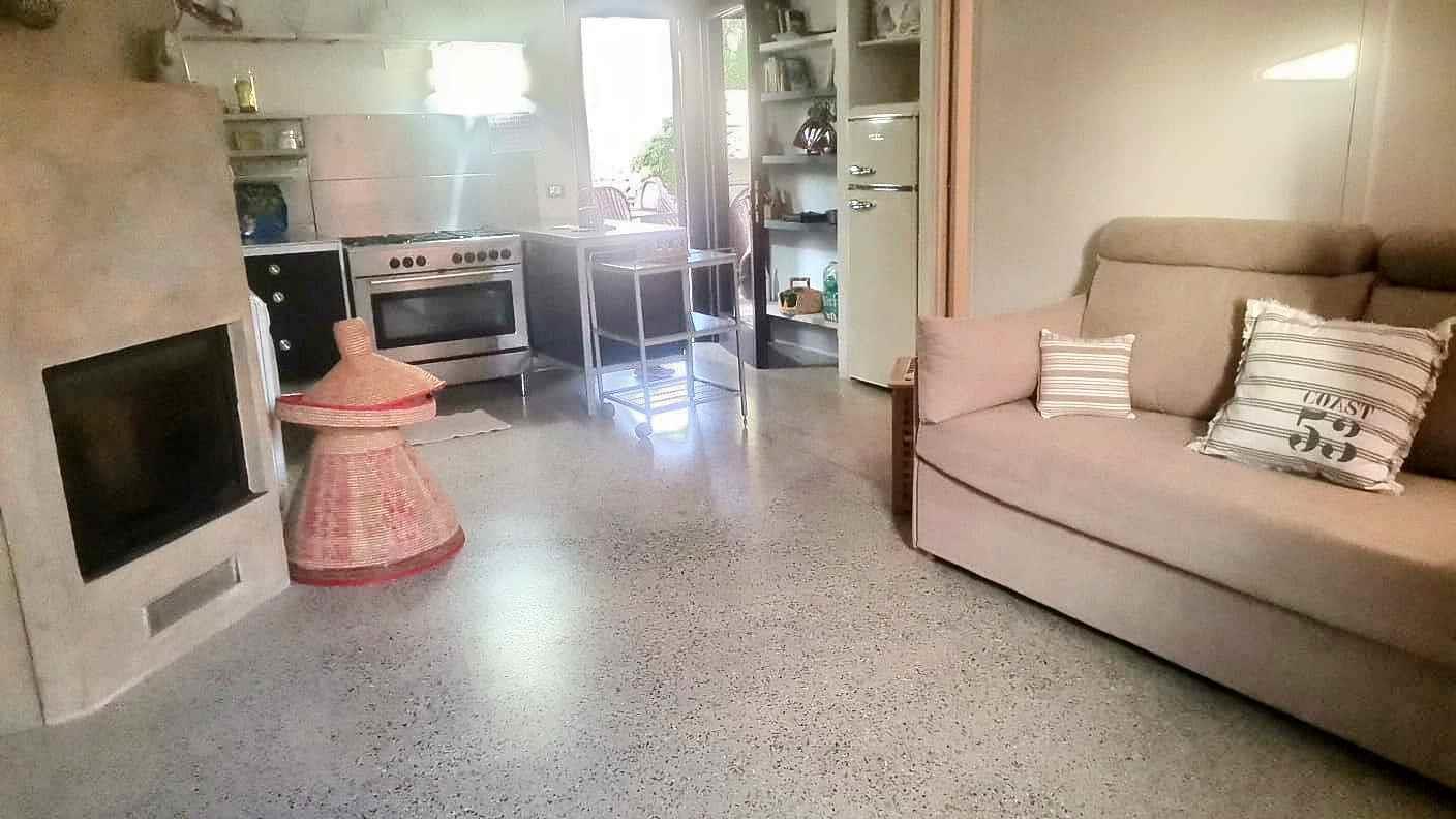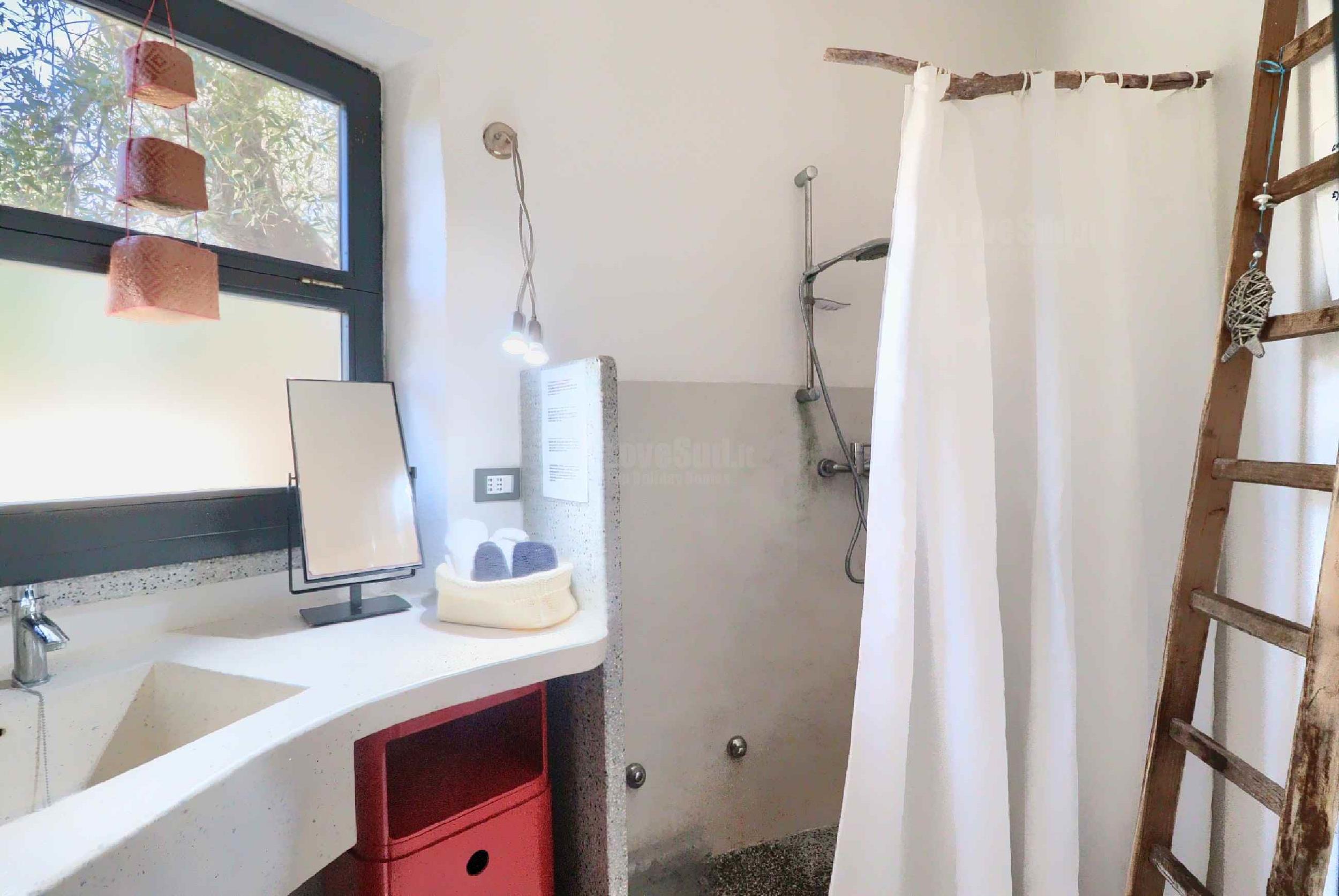 Dall’ingresso principale entriamo nel bel soggiorno, un unico ambiente climatizzato dotato di una cucina con forno, lavastoviglie e piano appoggio in acciaio e piccolo living con divano letto matrimoniale. La camera matrimoniale dispone di un semplice ripostiglio guardaroba e permette una vista sul mare e la campagna circostante. Completa l’immobile il bagno equipaggiato di doccia e servizi interni (è anche disponibile una doccia esterna).