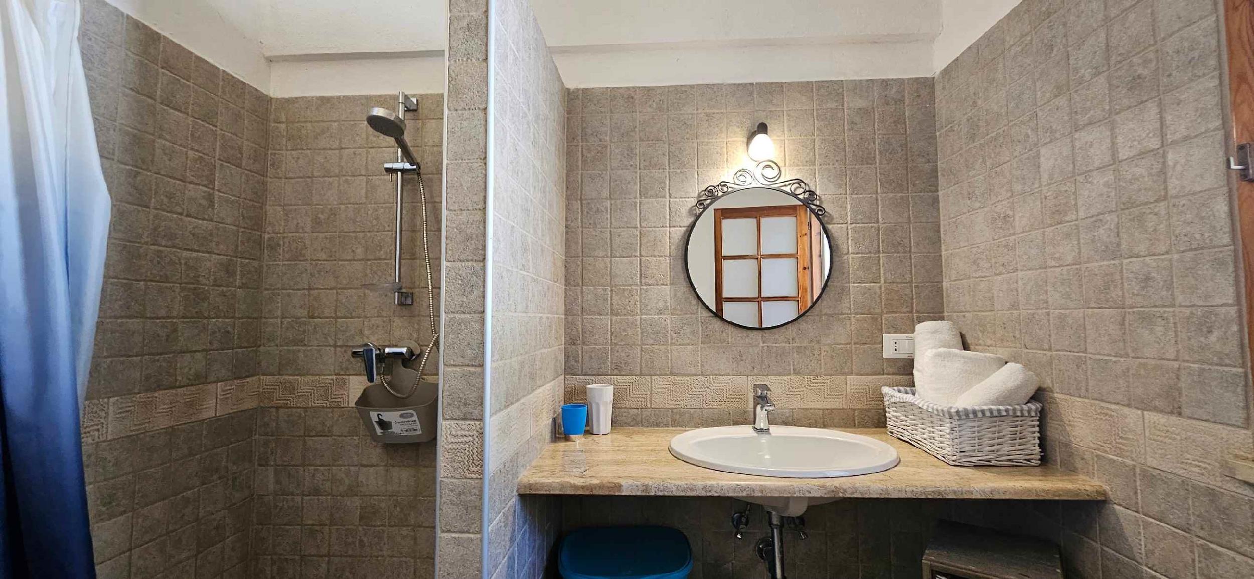 Nella parte retrostante l’abitazione vi è anche una comoda doccia esterna ed uno stanzino dove c’è la lavatrice. Da evidenziare che l’abitazione gode di due posti auto esterni e gratuiti, le finestre sono dotate di zanzariere ad esclusione della porta principale d’ingresso.
