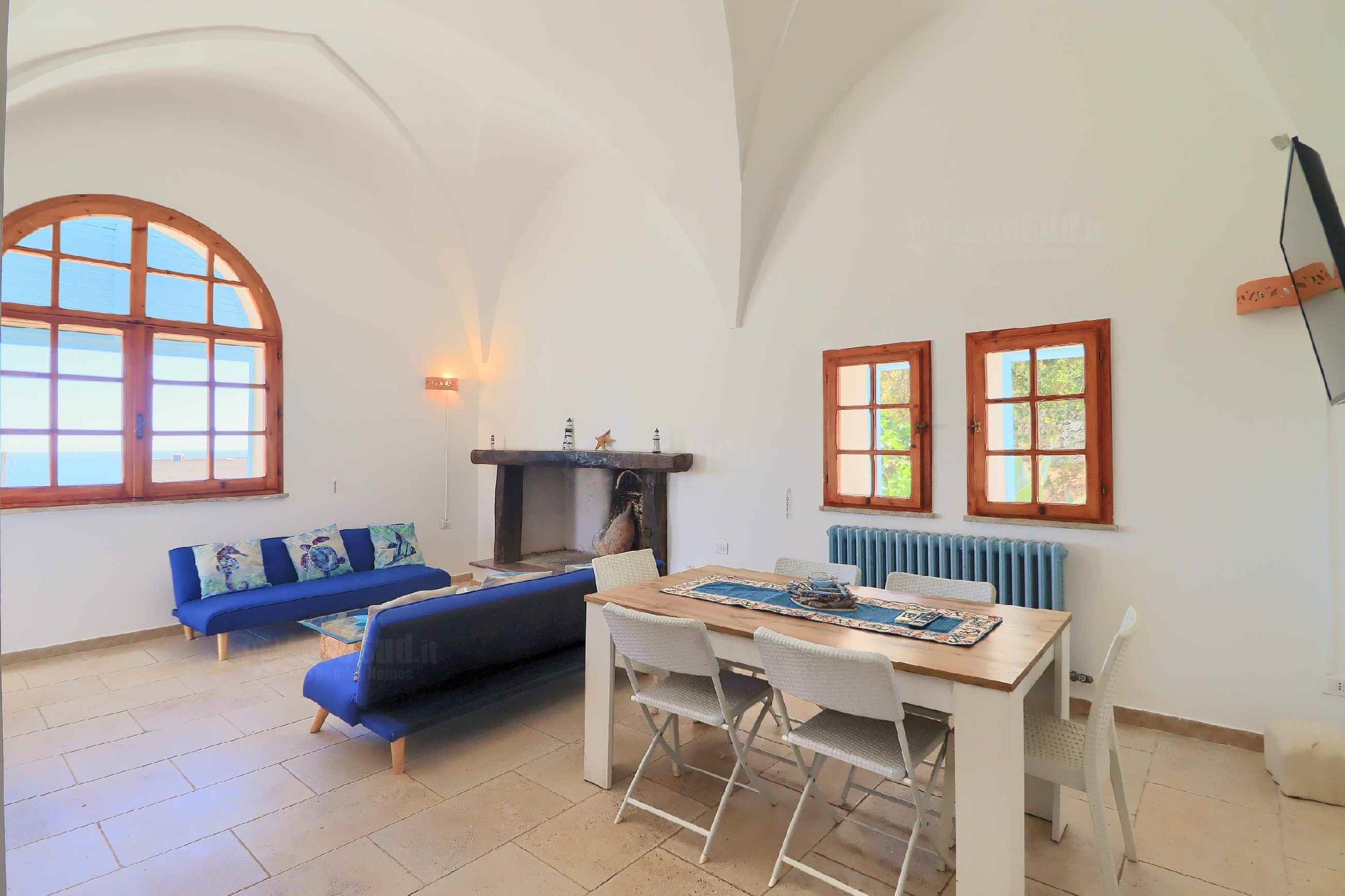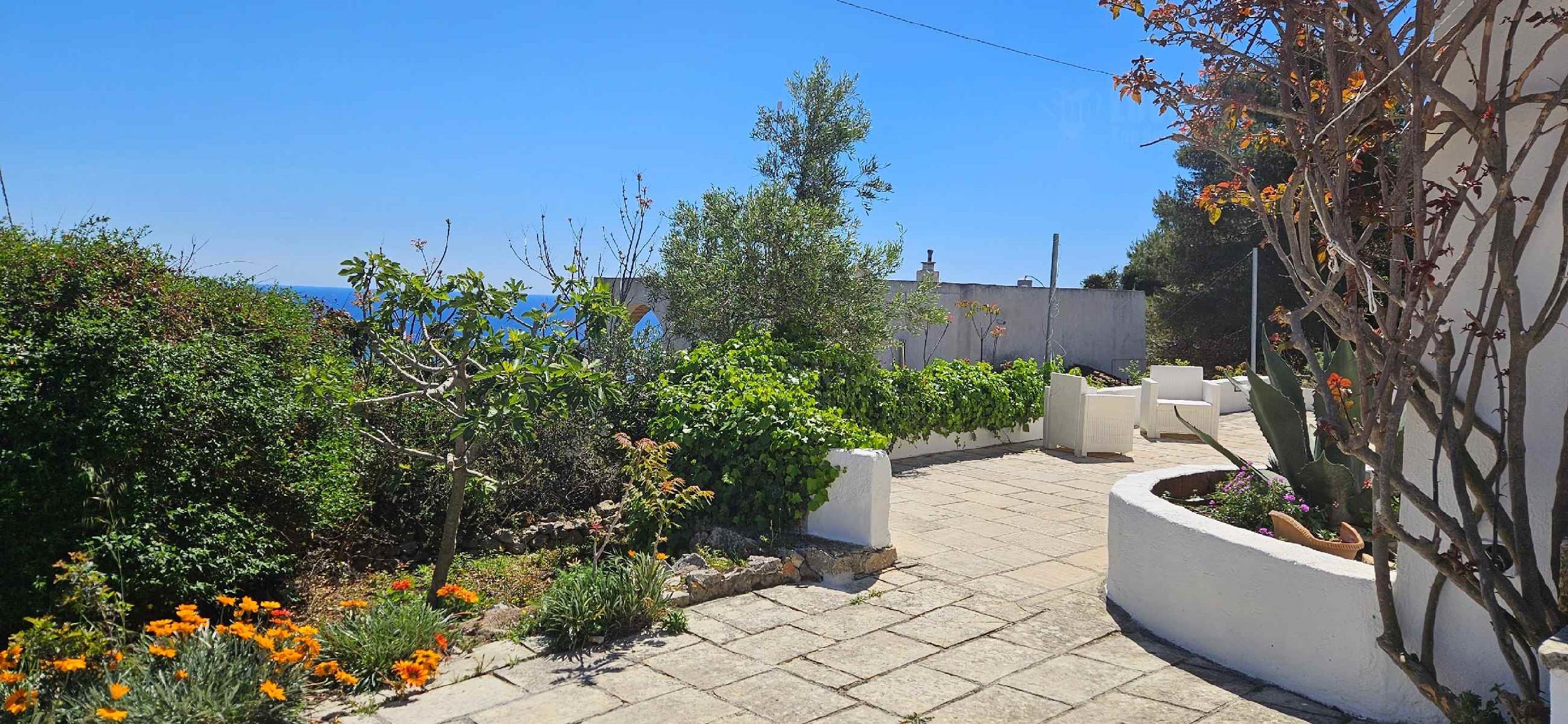 Lungo la strada che conduce dalla meravigliosa Baia del Ciolo all’affascinante Santa Maria di Leuca, vi è una splendida casa vista mare completamente indipendente e recintata. L’alloggio gode di un ampio giardino ornamentale dove tra ulivi salentini, carrubi e macchia mediterranea ci si può rilassare respirando i profumi di una terra incontaminata. La volta a stella del porticato completamente ammobiliato regala momenti di relax grazie alle comode sedute in muratura ricoperte da eleganti cuscini e dove è possibile mangiare guardando comodamente il mare.