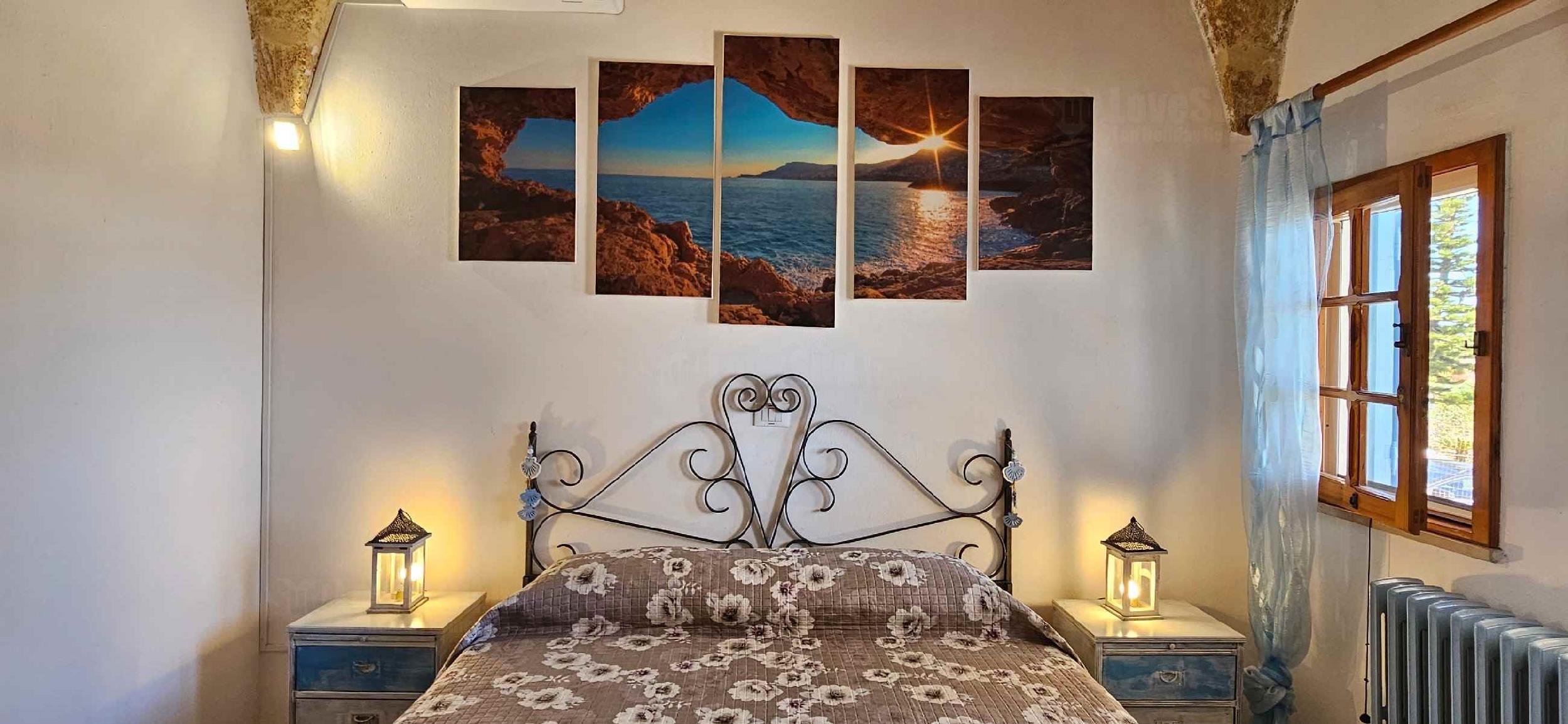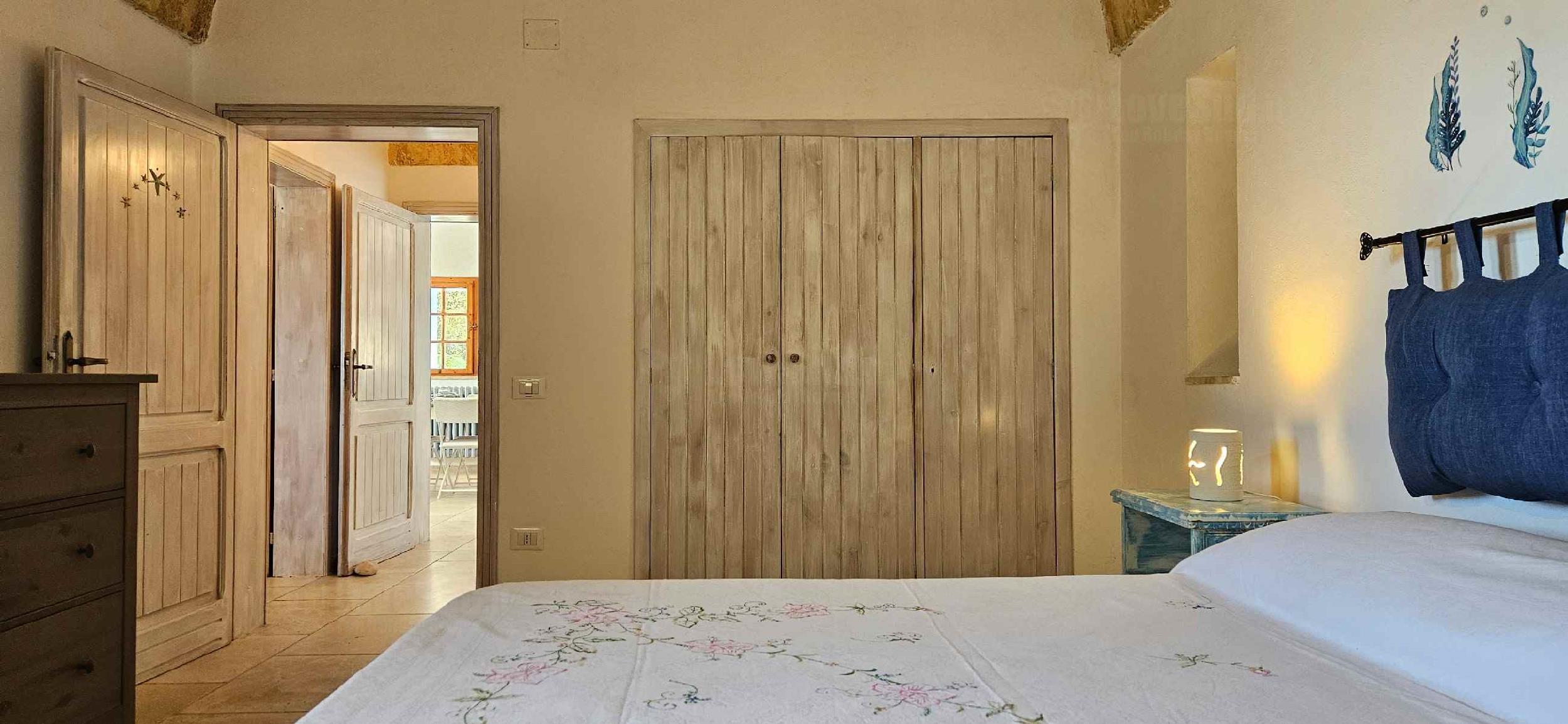 All’interno la villa ha un ampio soggiorno luminoso e climatizzato con due comodi divani ed uno storico e grande camino funzionante, vicino al soggiorno living da cui si può ammirare il mare, abbiamo una graziosa cucina in muratura dotata di ogni utensile e completa di forno, frigo, lavastoviglie e del rilevatore fumo e gas. La zona notte è formata da tre raffinate camere da letto due di queste abbellite da particolari volte a stella a vista tutte matrimoniali e climatizzate. Le camere hanno comodi armadi in muratura e sono arredate con gusto e design. Ci sono due bagni sempre in muratura dotati di ogni servizio tra cui due docce. Importante segnalare che la villa è dotata di termosifoni ideale quindi anche nei periodi di bassa stagione.