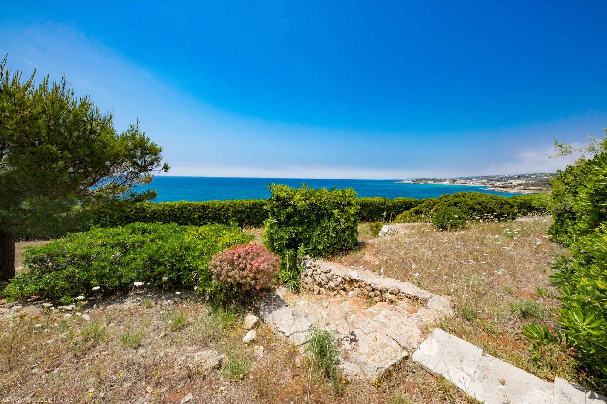 Immersa in un giardino di pini mediterranei a strapiombo sul mare, con accesso privato diretto al mare , costruita nell’architettura tipica delle pajare salentine, questa villa vintage ma confortevole si staglia, con il suo bianco scintillante sotto il sole salentino, contro l’azzurro scuro dello Ionio e l’azzurro chiaro del cielo.
