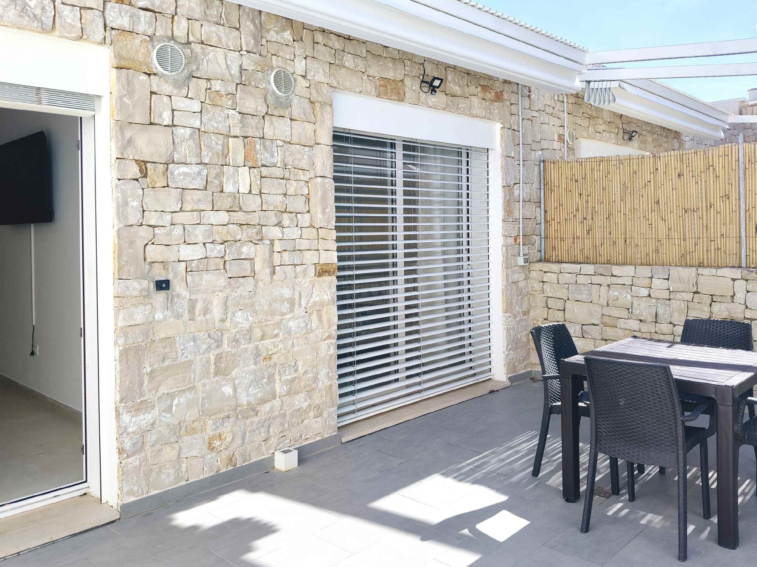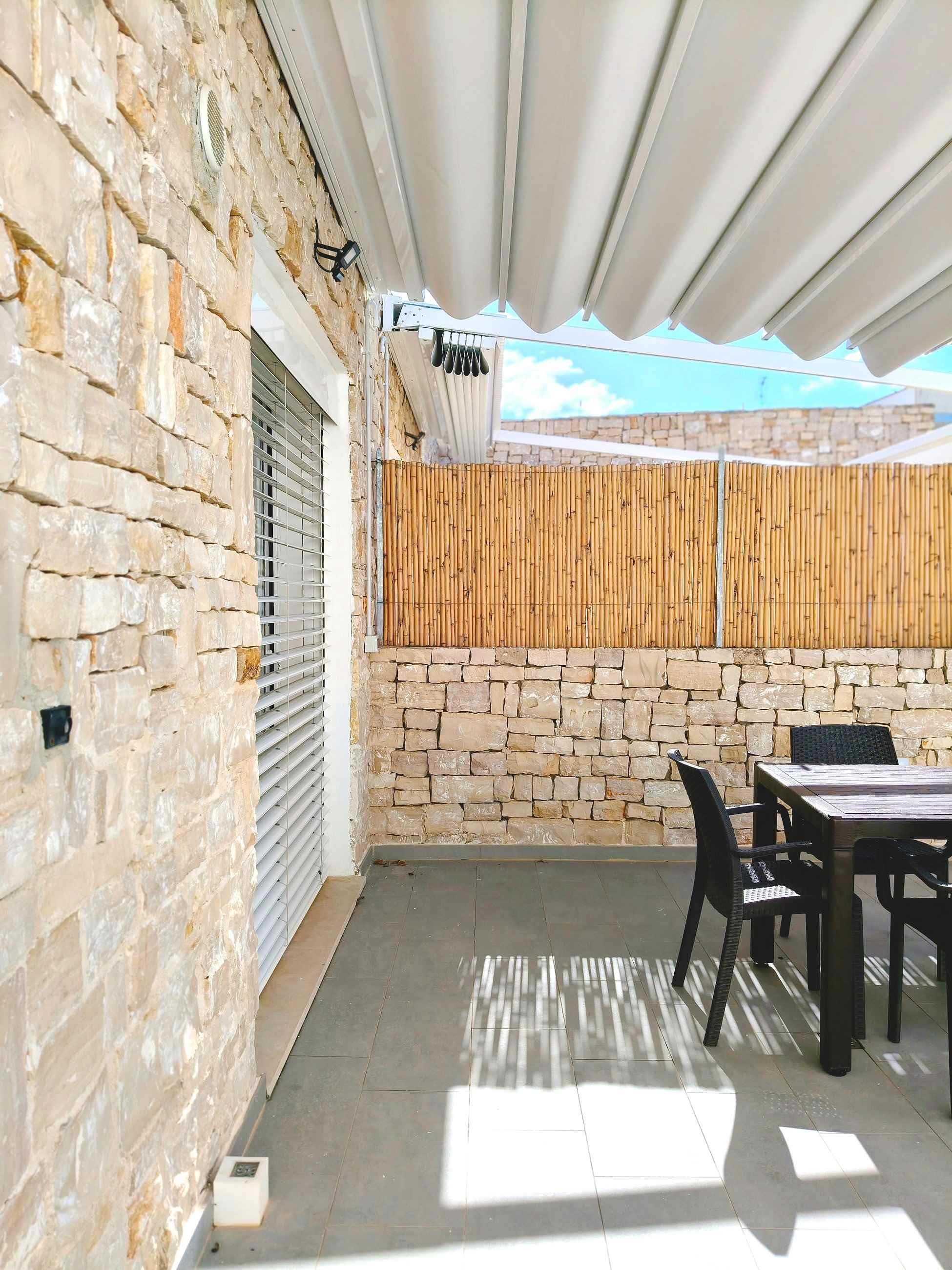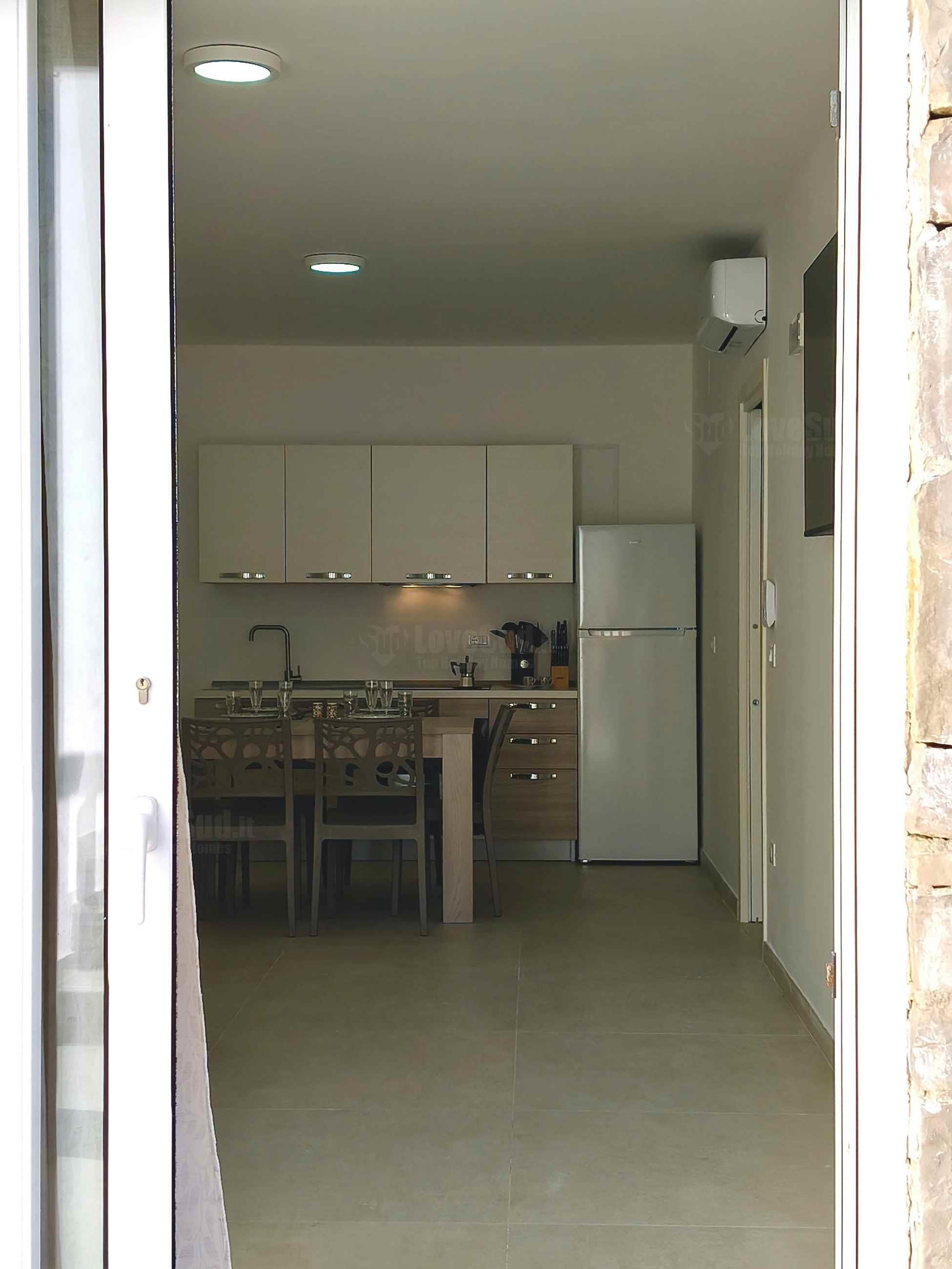 L’alloggio presenta una scala d’accesso di diversi gradini e sviluppa cortile e casa su unico piano, ribassato rispetto al manto stradale.