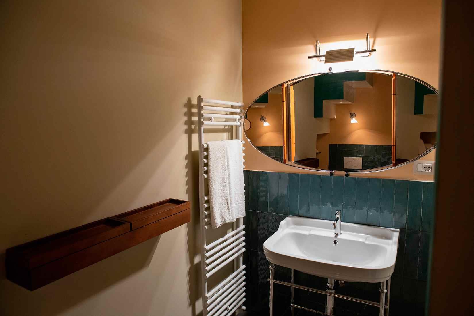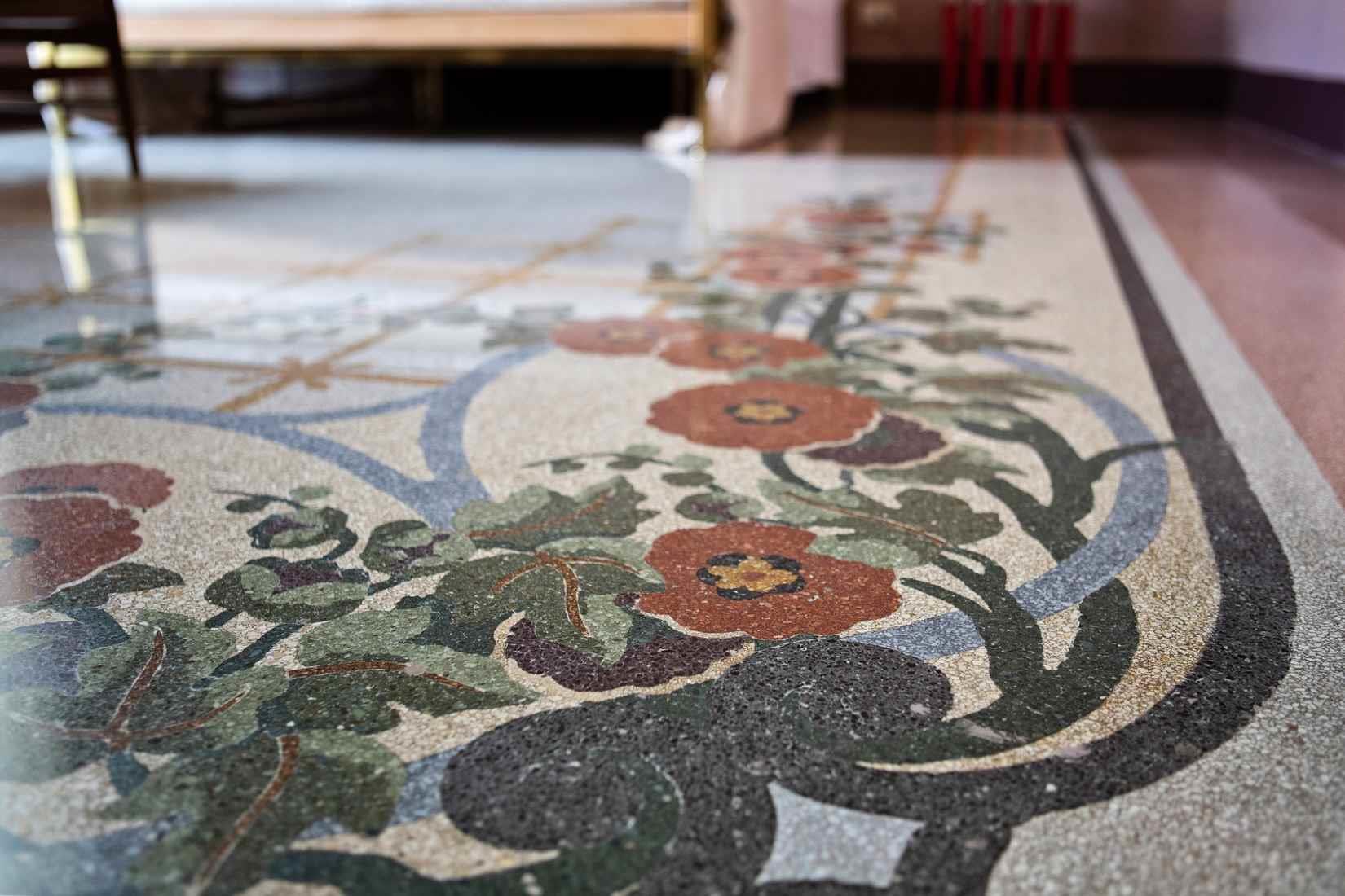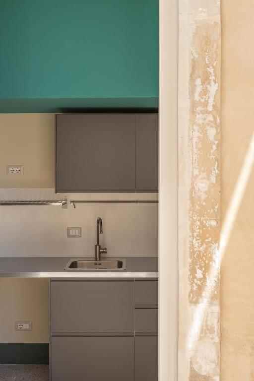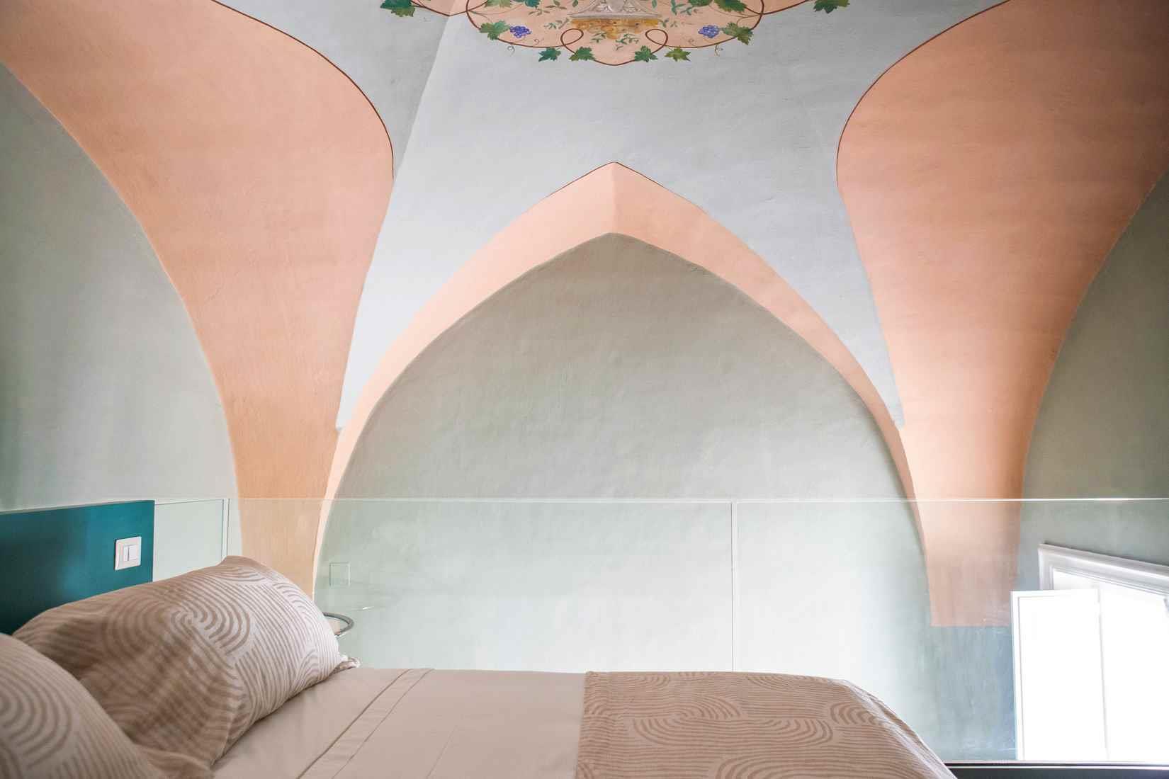 La ristrutturazione ha conservato gli spazi originali della casa e recuperato i bellissimi pavimenti decorati in gettata di graniglia e le decorazioni sulle volte a stella e sulle pareti; il grande salone in stile Impero è stato restaurato con attenzione conservando gli arredi d’epoca, creando così un arredamento vintage e di design.
