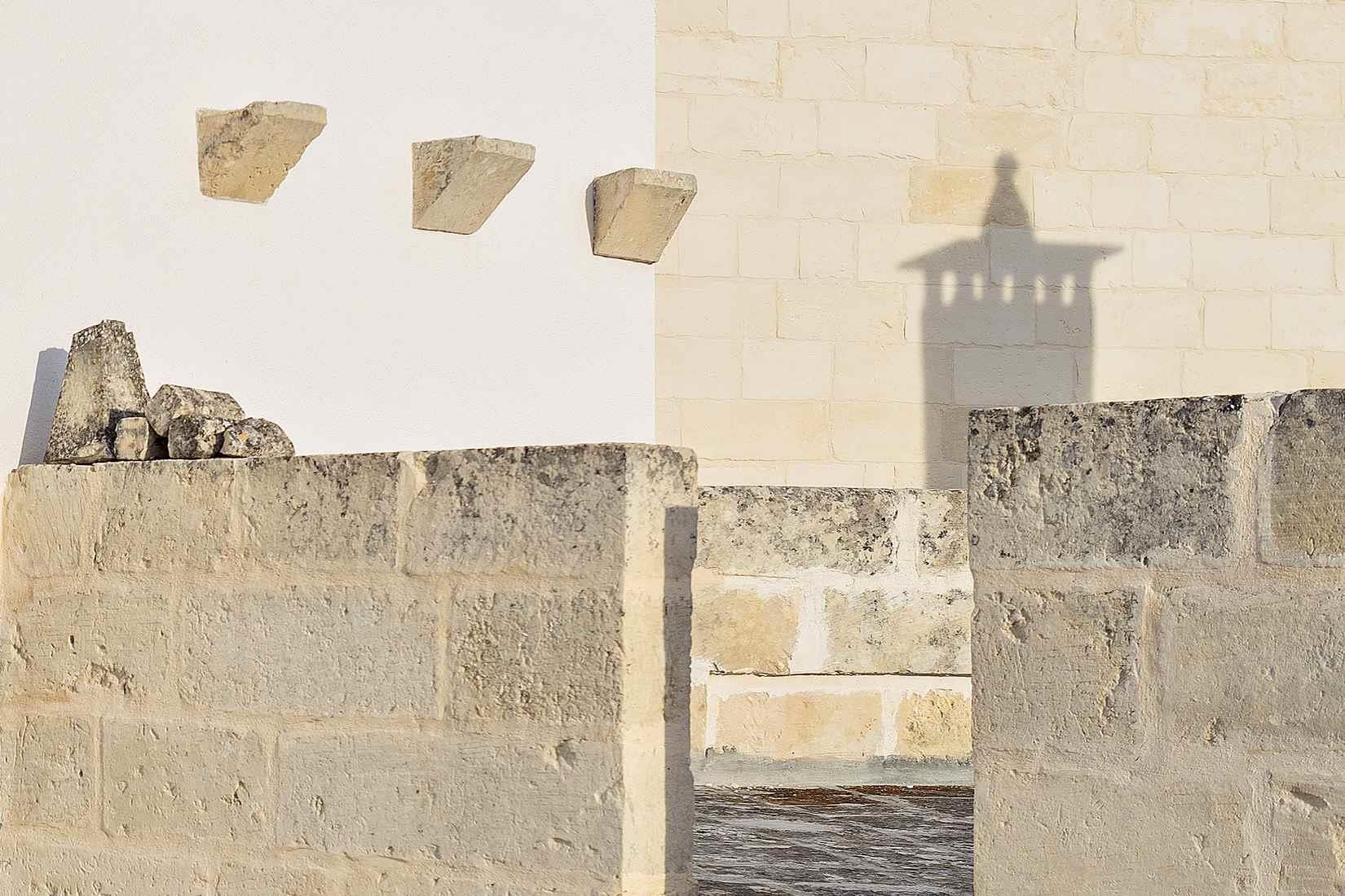 La piscina con bordo a sfioro si inserisce armonicamente nel giardino, parte di un antico agrumeto, ed è collegata al solarium sul terrazzo da una scala bianca; un’ampia pedana in legno accoglie la vasca idromassaggio e la cascata, luogo perfetto dove rilassarsi. Dall’acqua lo sguardo si rivolge alla casa e al calore della pietra leccese o alle cime degli aranci che fanno capolino tutto intorno.