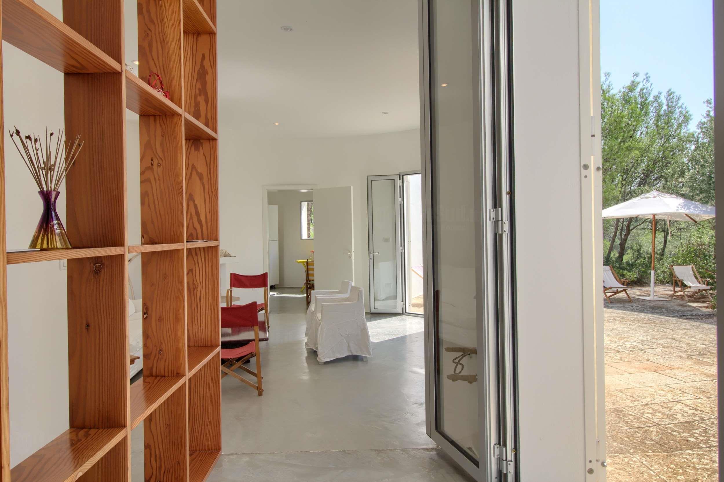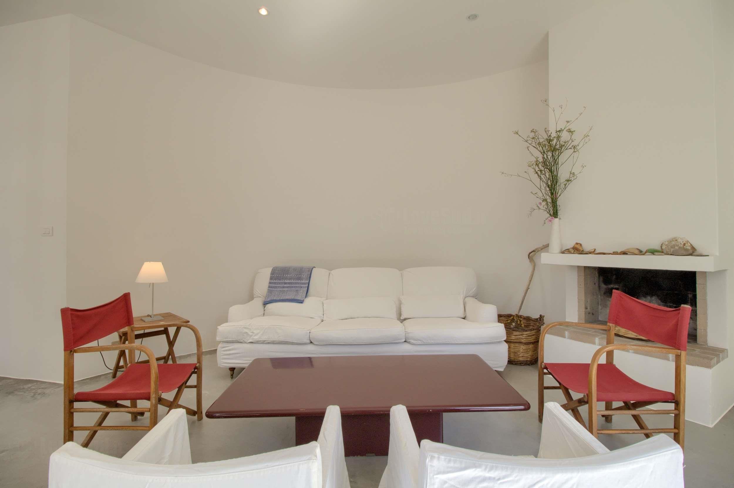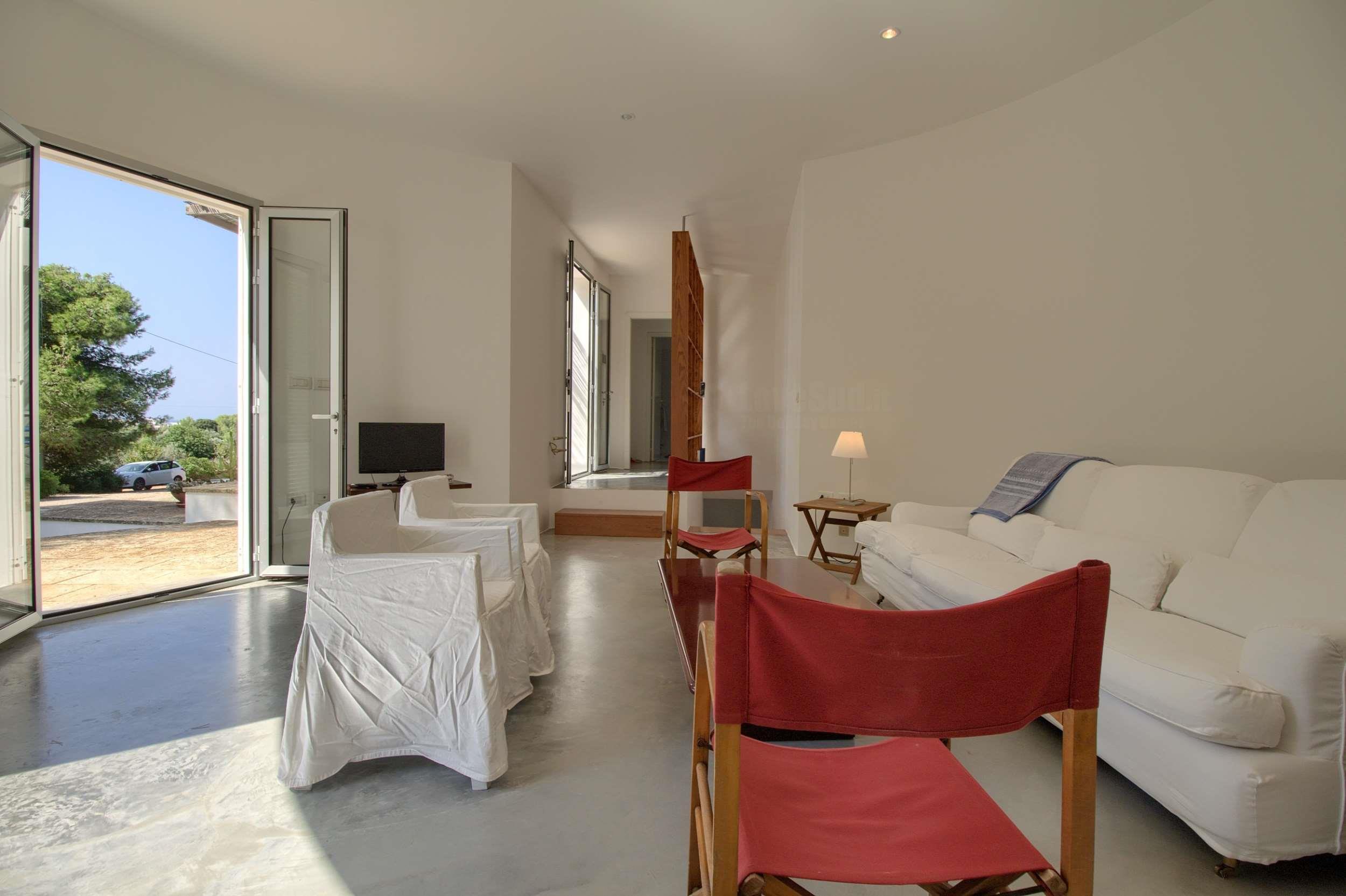 La luminosa dimora rappresenta un’ottima soluzione per chi vuole trascorrere delle vacanze all’insegna del relax e della privacy. La villetta infatti avendo un ampio giardino con un comodo parcheggio interno e trovandosi in una posizione invidiabile di totale tranquillità rappresenta una vera oasi di pace a meno di 1km da Santa Maria di Leuca. La struttura si sviluppa su due piani, un piano terra ed un piano leggermente ribassato. A piano terra c’è un luminoso soggiorno living arredato con semplicità e con gusto, una cucina attrezzata di ogni utensile, due graziose camere da letto ed un bagno completo di servizi.