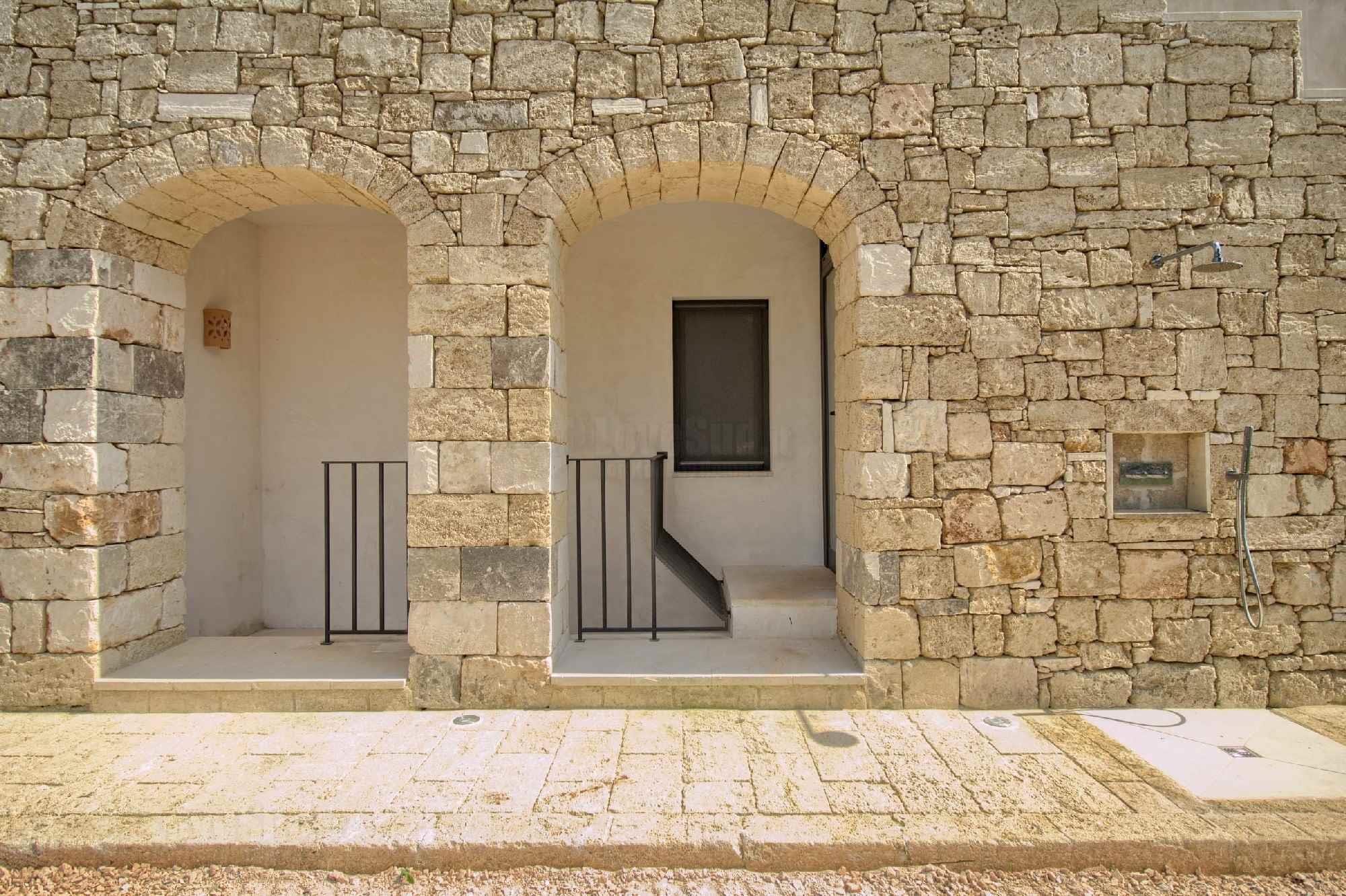 La proprietà è quasi completamente recintata con caratteristici muretti a secco, ha un cancello automatico e le telecamere esterne di sicurezza.