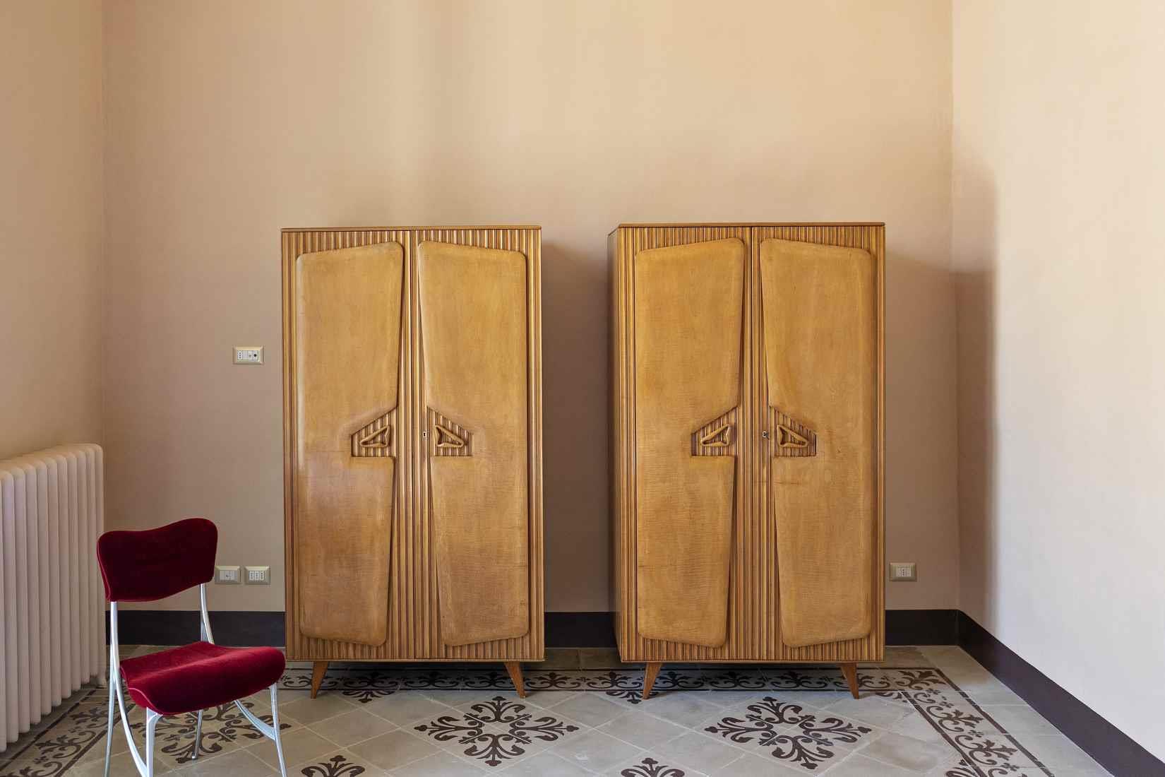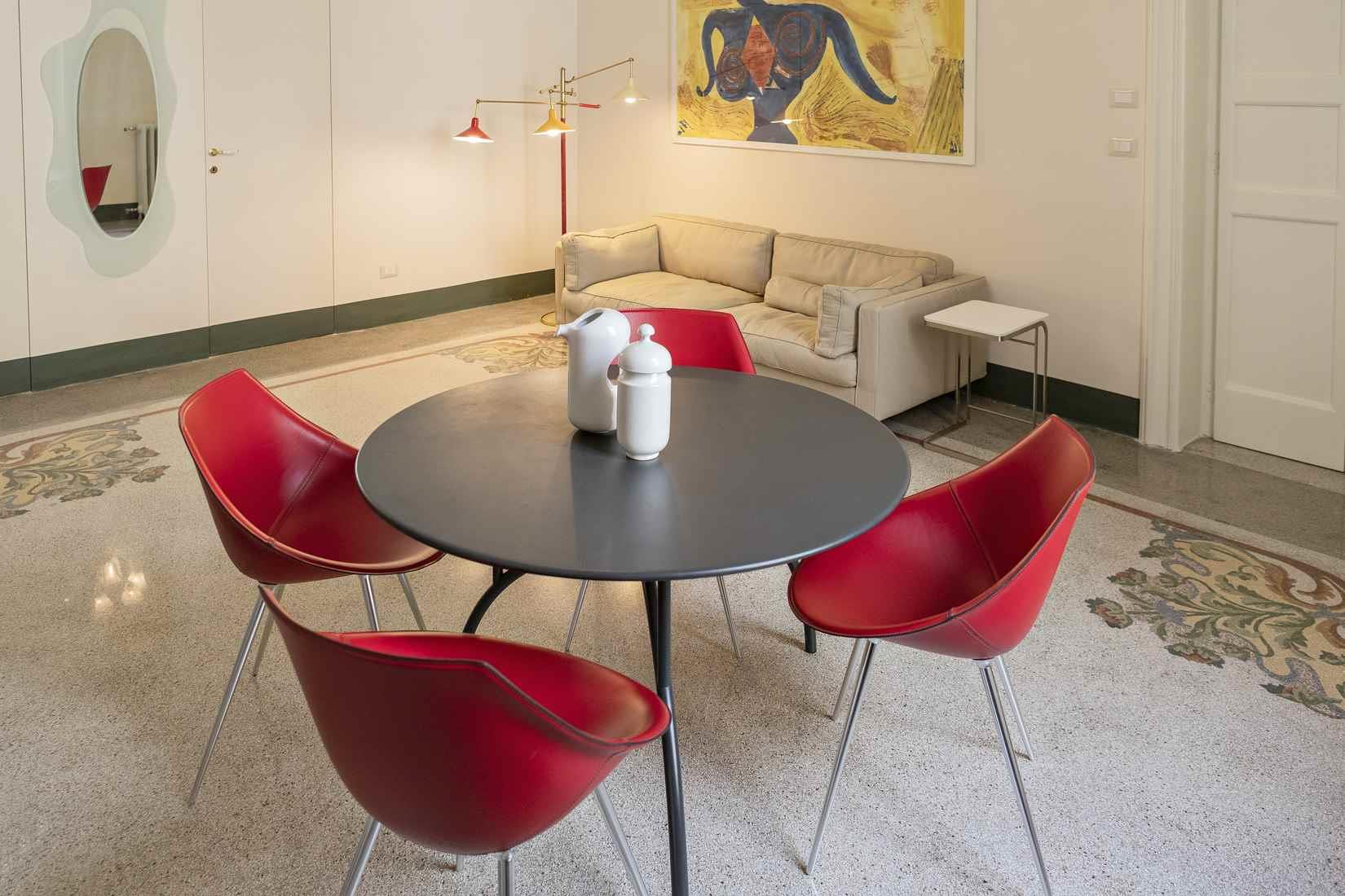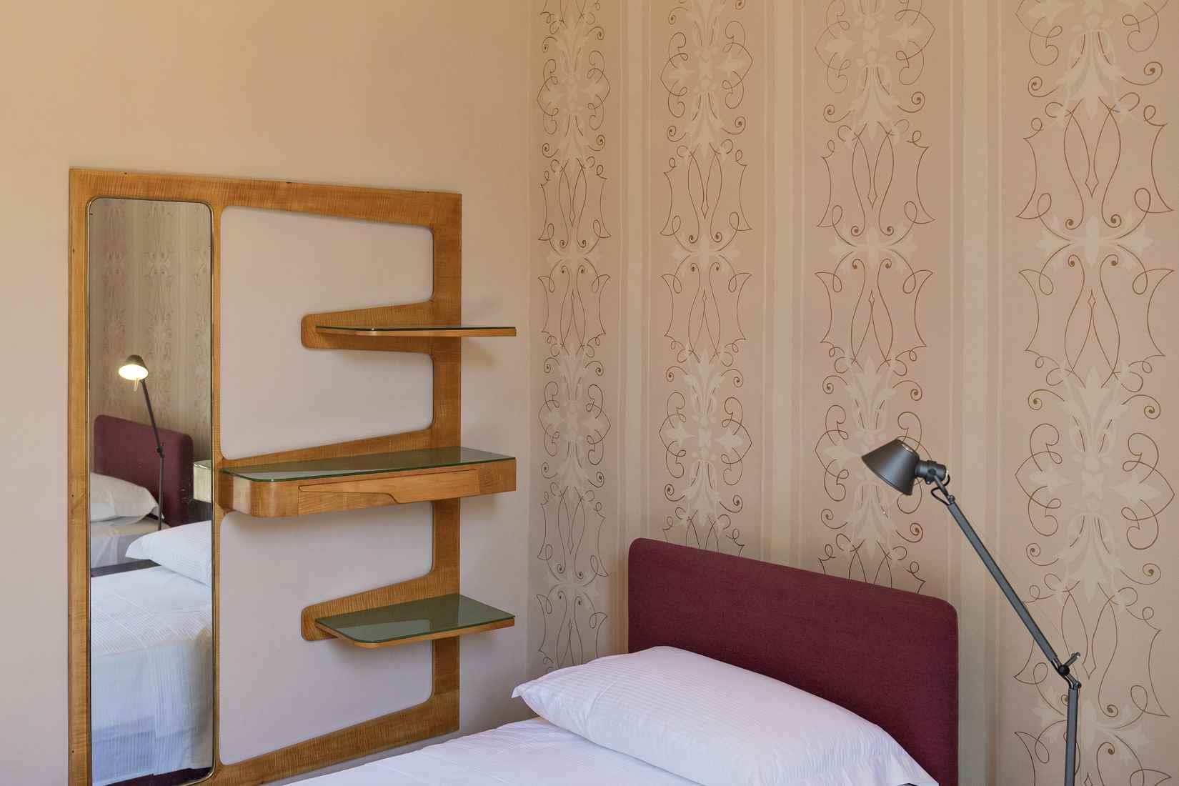 La ristrutturazione ha conservato gli spazi originali della casa e recuperato i bellissimi pavimenti decorati in gettata di graniglia e le decorazioni sulle volte a stella e sulle pareti; il grande salone in stile Impero è stato restaurato con attenzione conservando gli arredi d’epoca, creando così un arredamento vintage e di design.