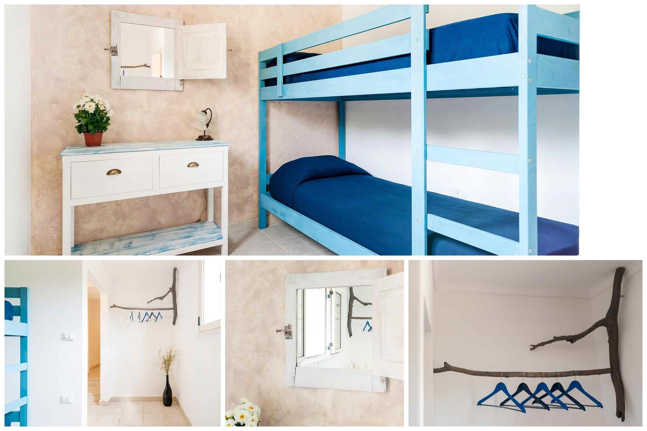 La villetta all’interno si compone di un ampio soggiorno con tavolo da pranzo e divano letto che apre su una cucina completamente attrezzata. Dalla cucina si accede alla zona notte, composta da 2 camere, di cui una con letto matrimoniale e una con letto a castello e 1 bagno completo.