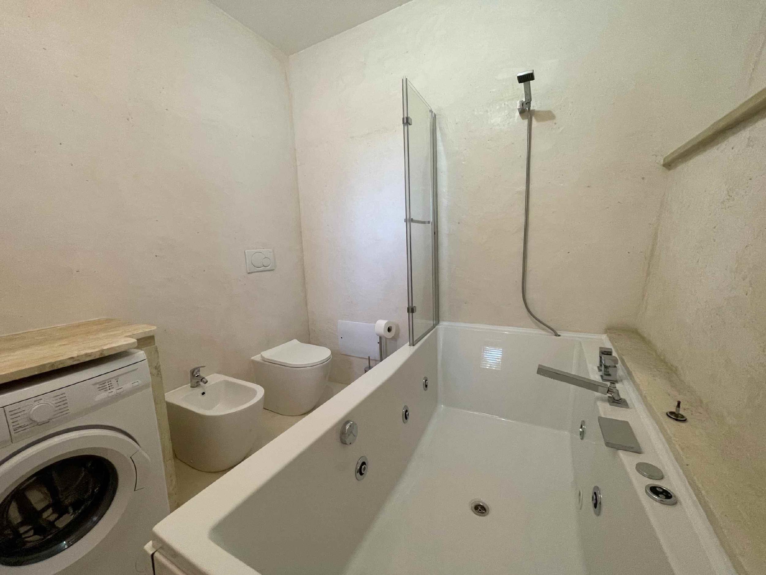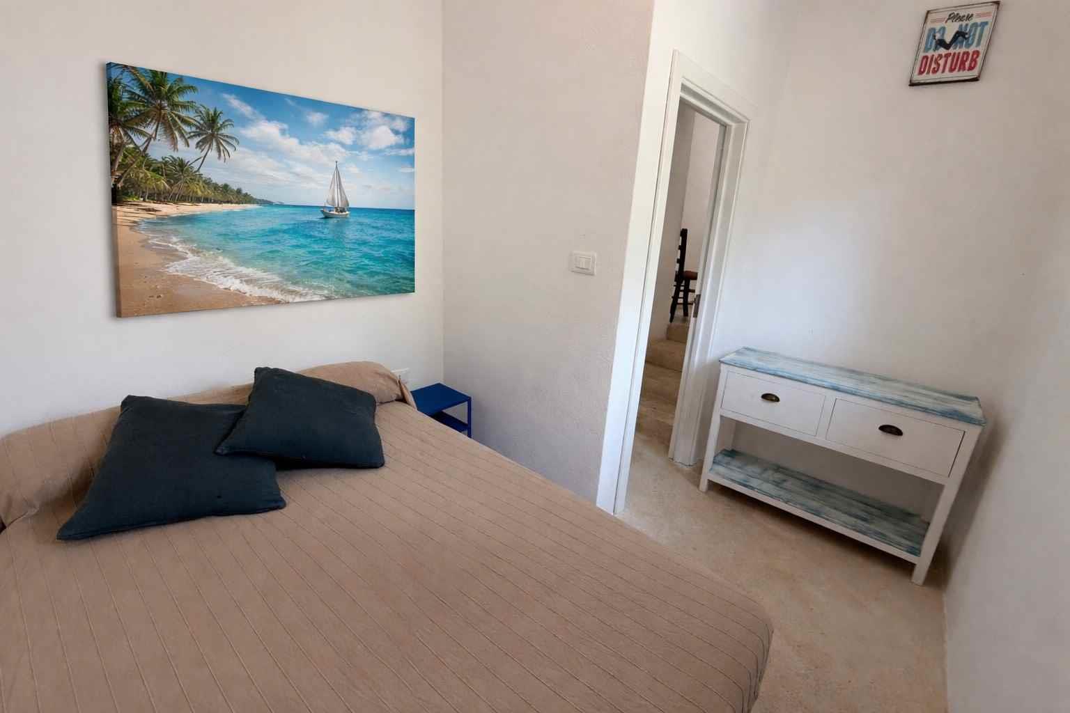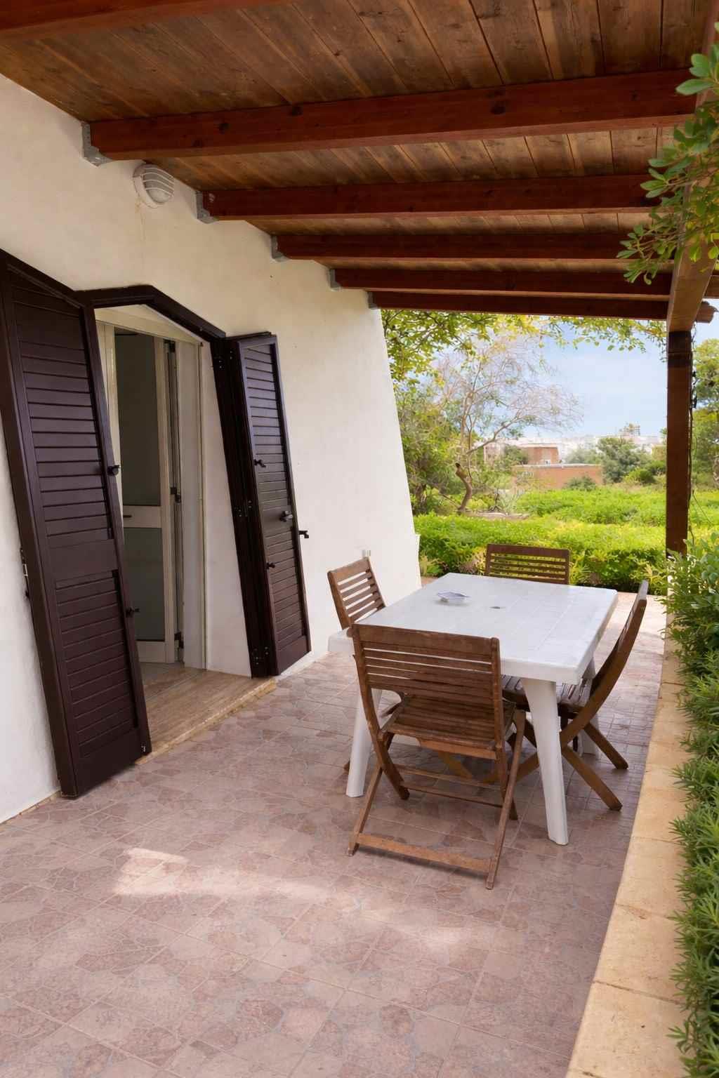 All’interno, la villetta offre un luminoso soggiorno con tavolo da pranzo e divano letto, che si apre su una cucina completamente attrezzata. La zona notte comprende due camere da letto, una con letto matrimoniale e una con letto una piazza e mezza, e un bagno completo dotato di vasca idromassaggio, ideale per concedersi momenti di benessere dopo una giornata di mare. La zona notte è climatizzata, garantendo il massimo comfort anche durante le giornate più calde.