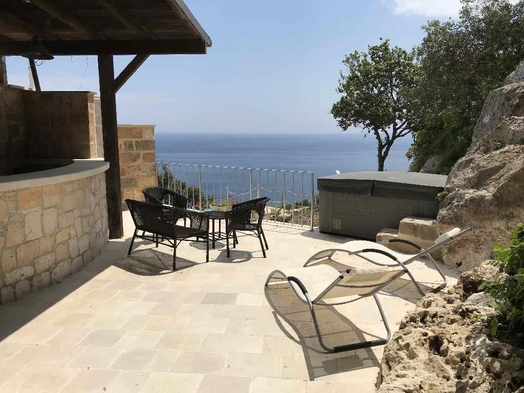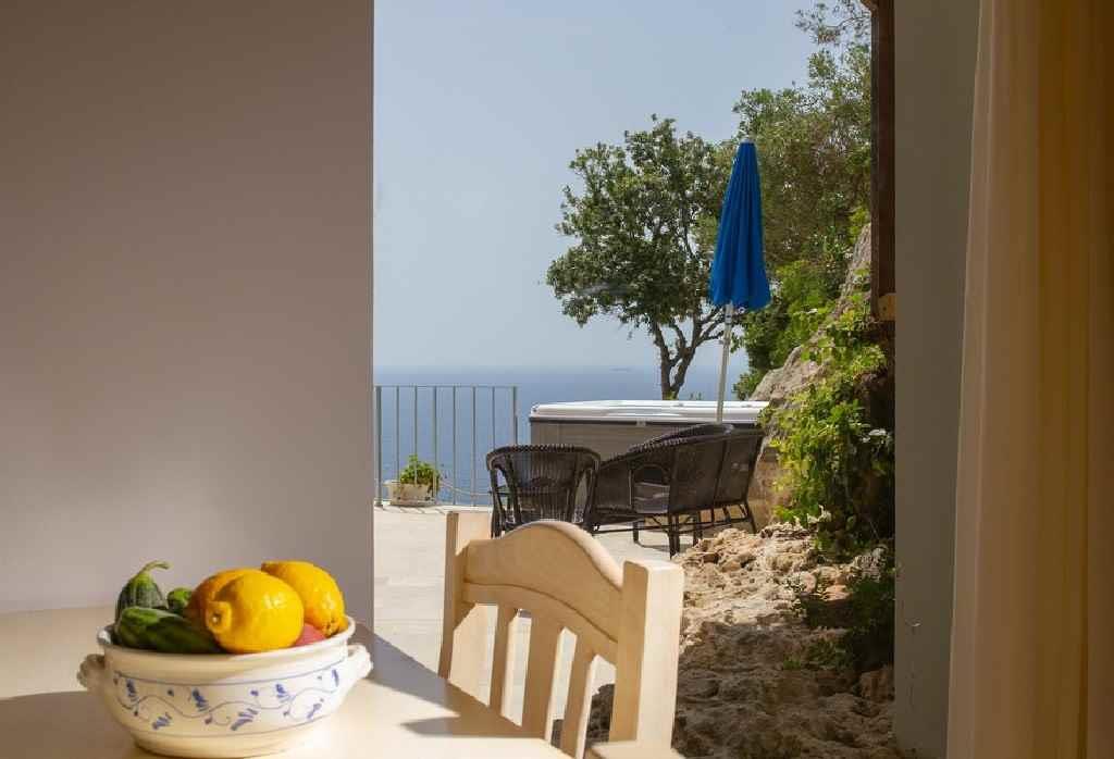 La terrazza ospita un comodo salottino in vimini, tavolo da pranzo, sedie sdraio e un’incantenvole Jacuzzi vista mare per godere al massimo il relax delle vostre vacanze.